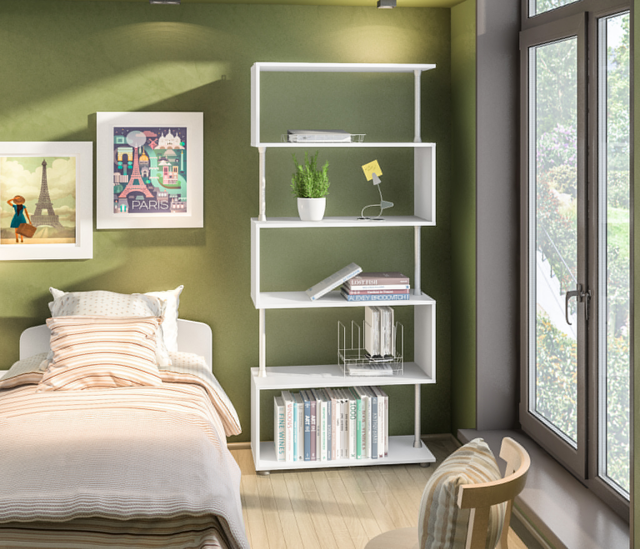 Открытые стеллажи в спальню