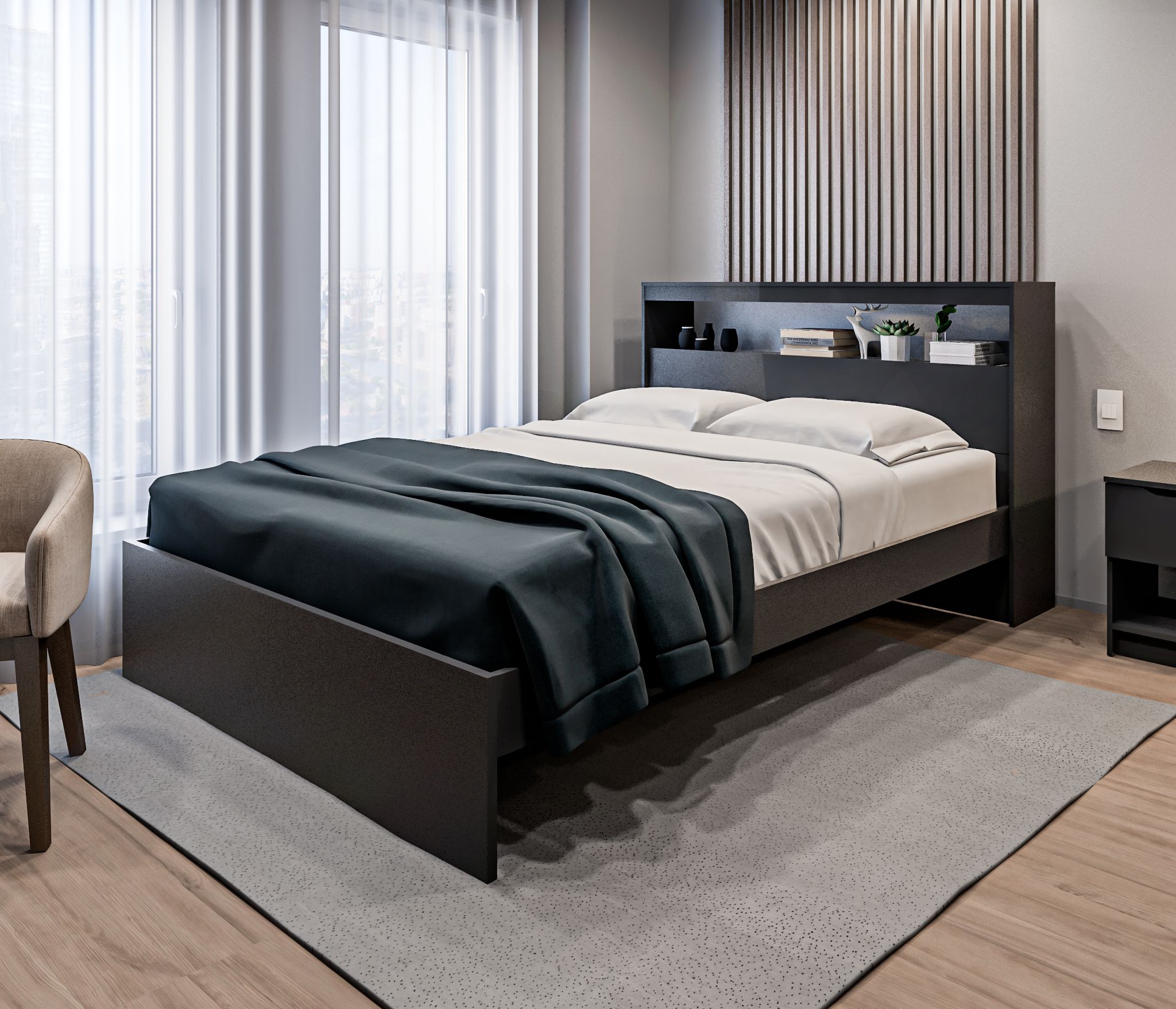 Размеры кровати (ШхВхГ) 206х103х266 см