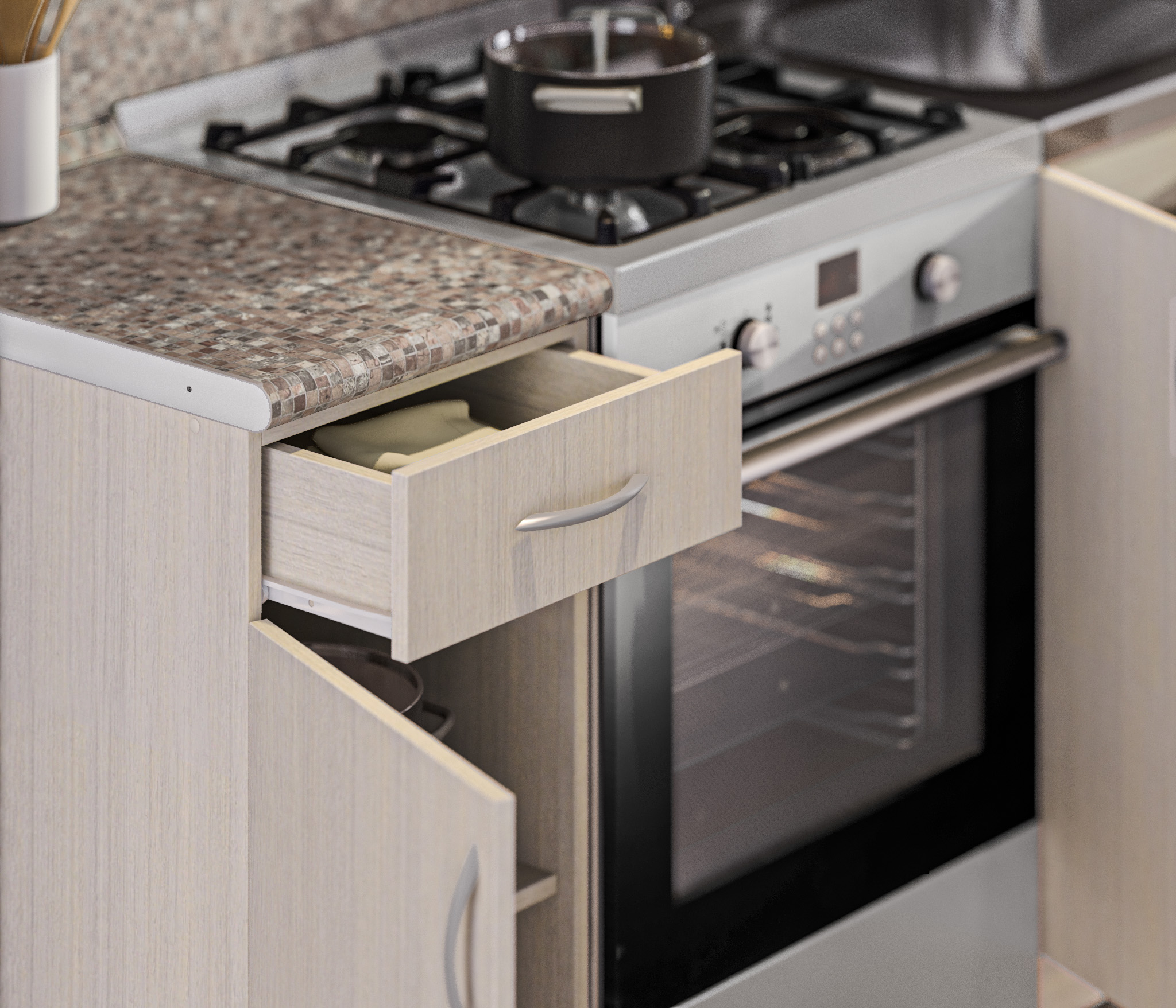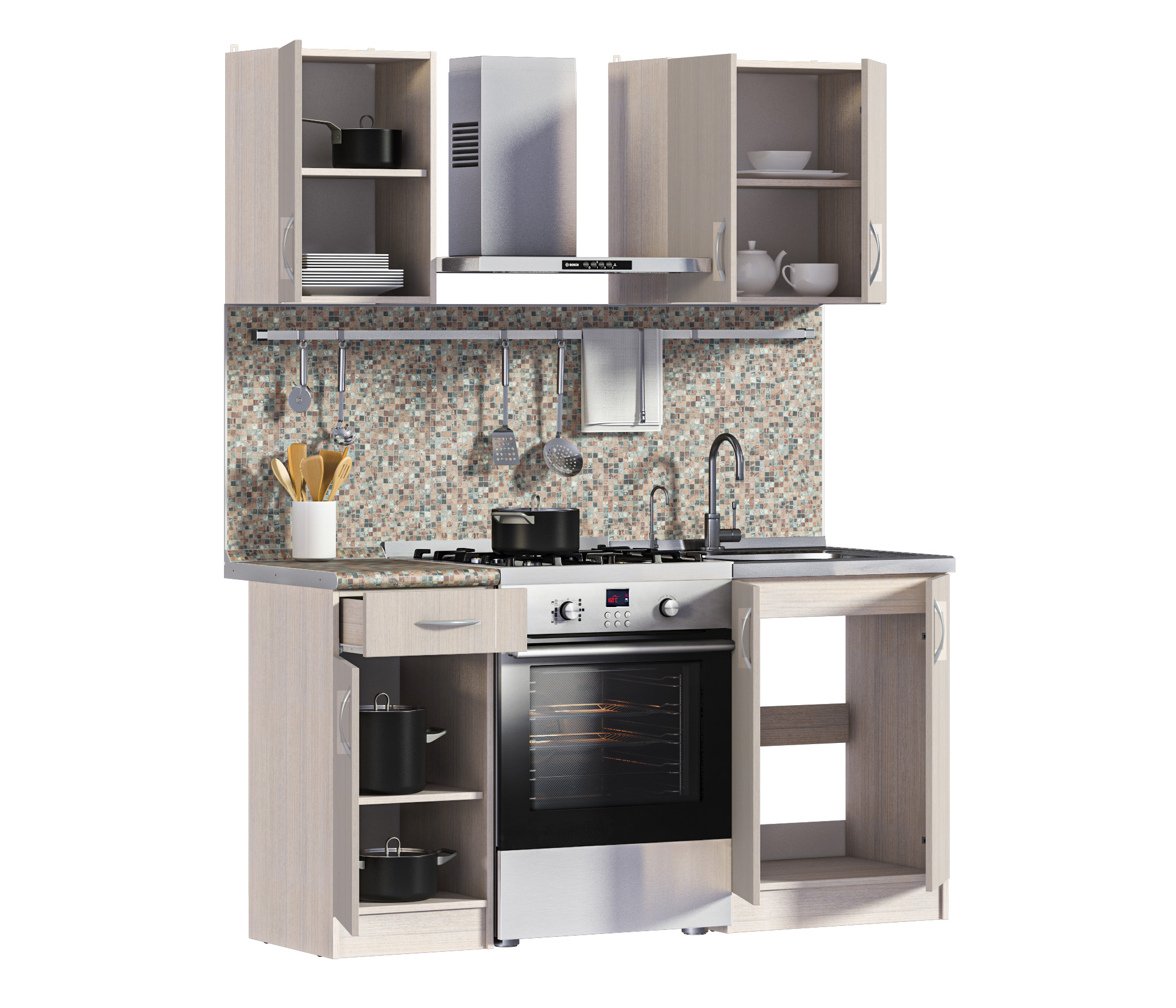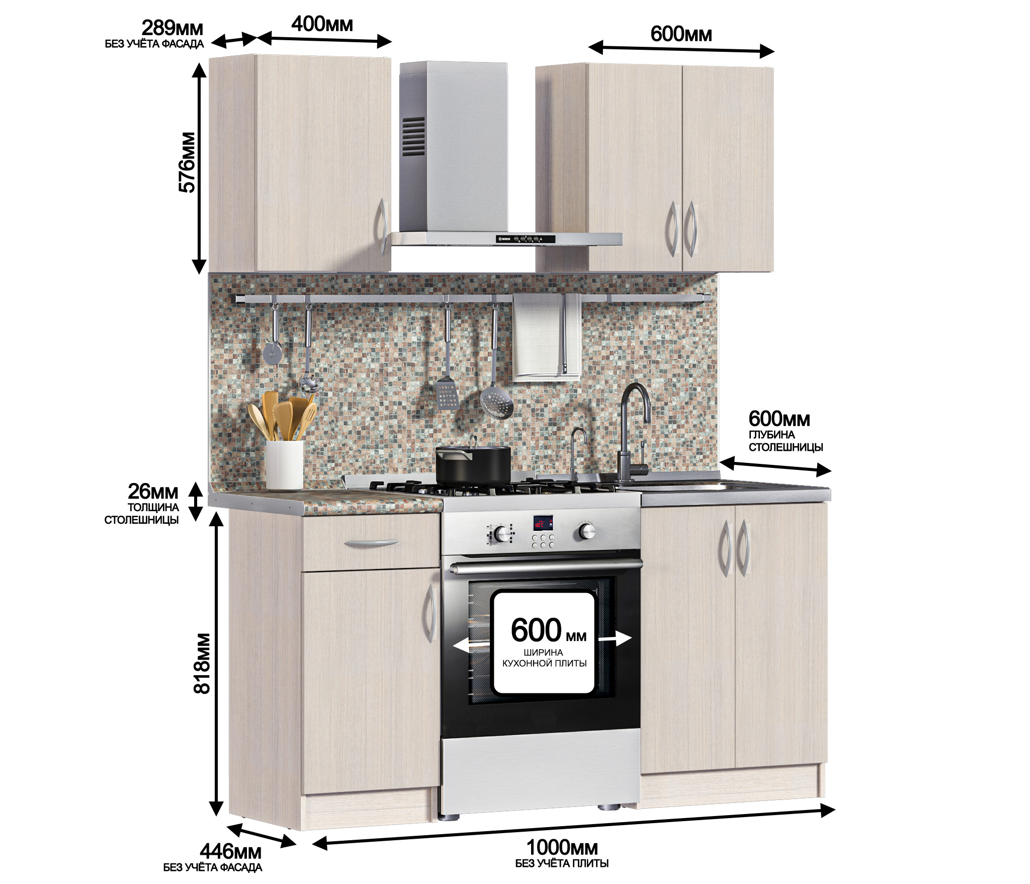 Дополнительно рекомендуем приобрести стеновую панель, мойку и смеситель.