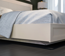 Кровать отличного качества, очень красивая и удобная, с мягким подголовником. Самое главное, что понравилось, приподняты края от пола, ощущение, что кровать парит и не мешает заправлять ее, ноги не бьются о край. Отличное решение! И смотрится красиво.
