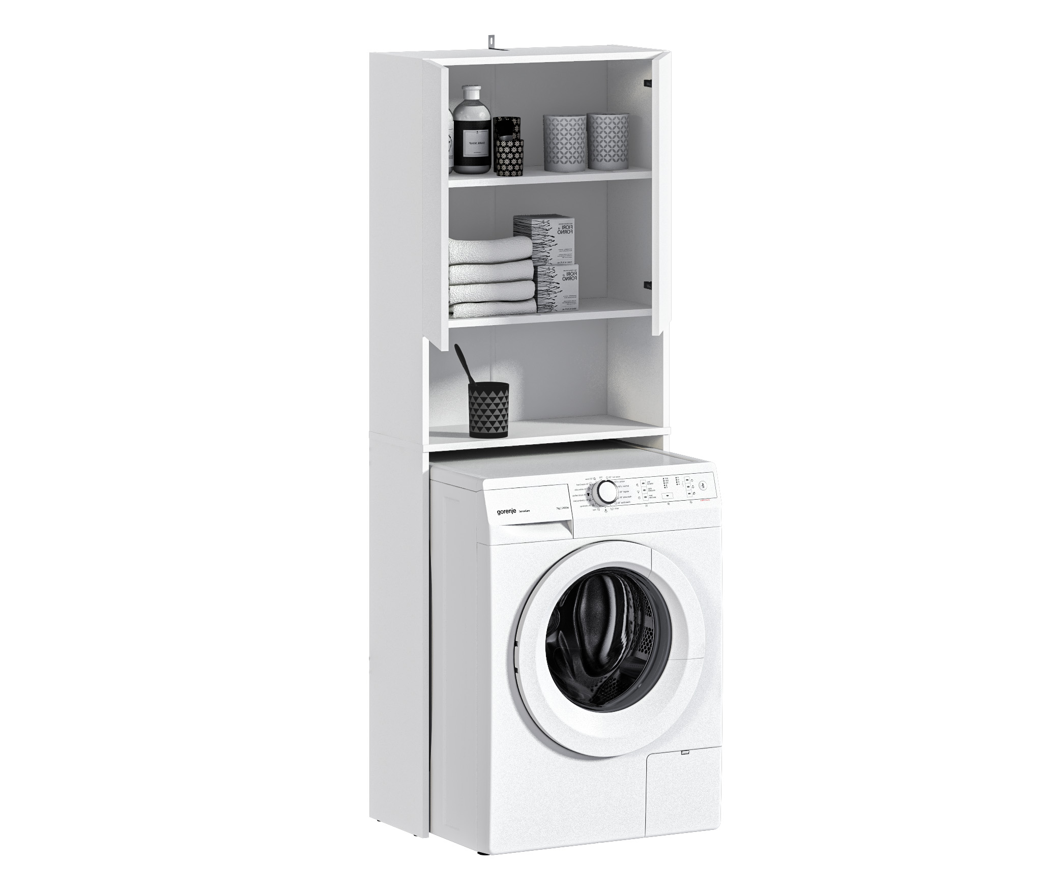 Альфа СБ-3485 – функциональный и элегантный стеллаж для ванной комнаты, предназначенный для установки над стиральной или сушильной машиной. Габаритные размеры – ширина 64,4 см, высота 176 см, глубина 28,4 см.