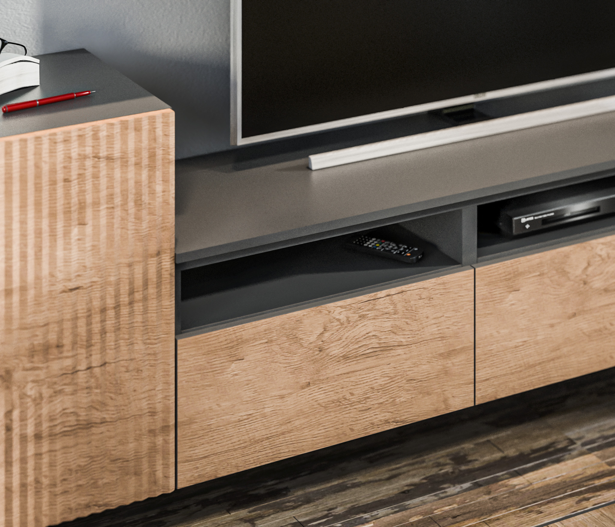 Гостиная (стенка) Тренд Диамант серый/МДФ Джаз Акация светлая (Акация светлая)
