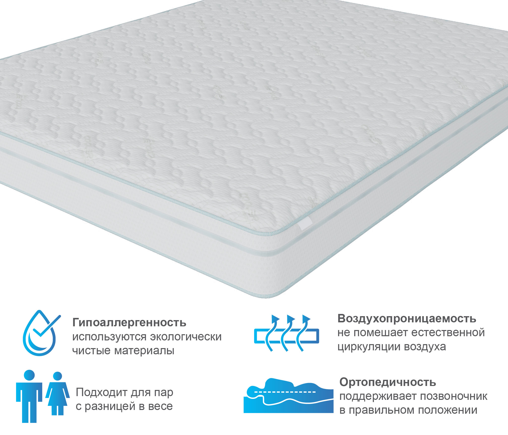 Все пены в составе матраса имеют сертификат CertiPur. CertiPur – независимая сертификация по европейскому стандарту, разработанному специально для пен, которые используются в изготовлении матрасов и мягкой мебели. Матрас прошел испытание в лаборатории качества, что гарантирует высочайшее качество, долговечность матраса и высокий уровень комфорта. Трикотажный дышащий чехол поддерживает исключительную вентиляцию матраса, позволяя вашему телу дышать всю ночь, и вы ощущаете себя как на облаке.