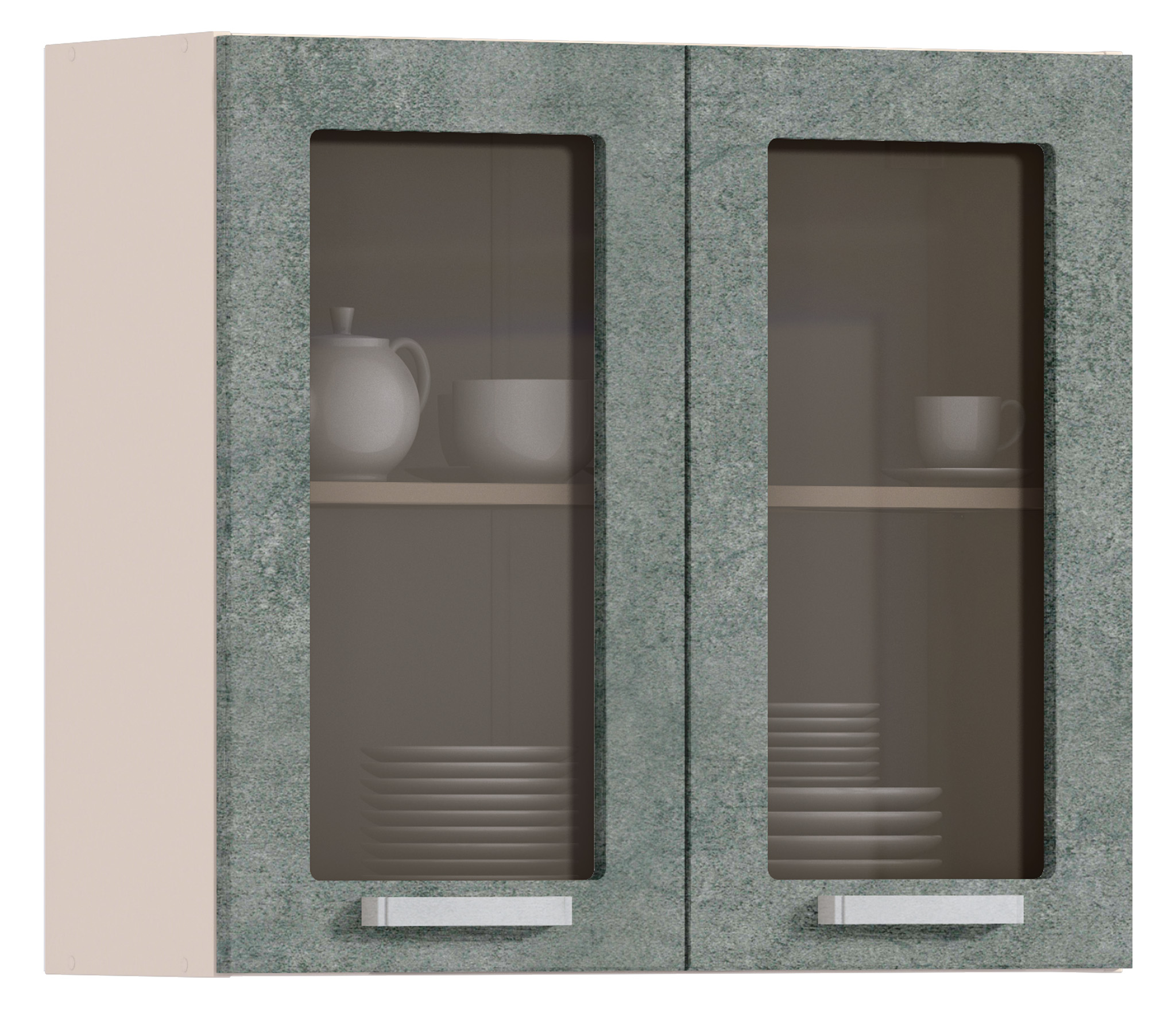 Регина шкаф навесной со стеклом 2 дв 80х72 см (Бетон серый)
