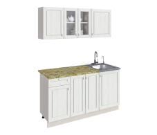 Кухонный гарнитур Катя-150 с витриной Авиньон/Ясень Золото/Мрамор золотой АркобаленоR5 Код 00000329263