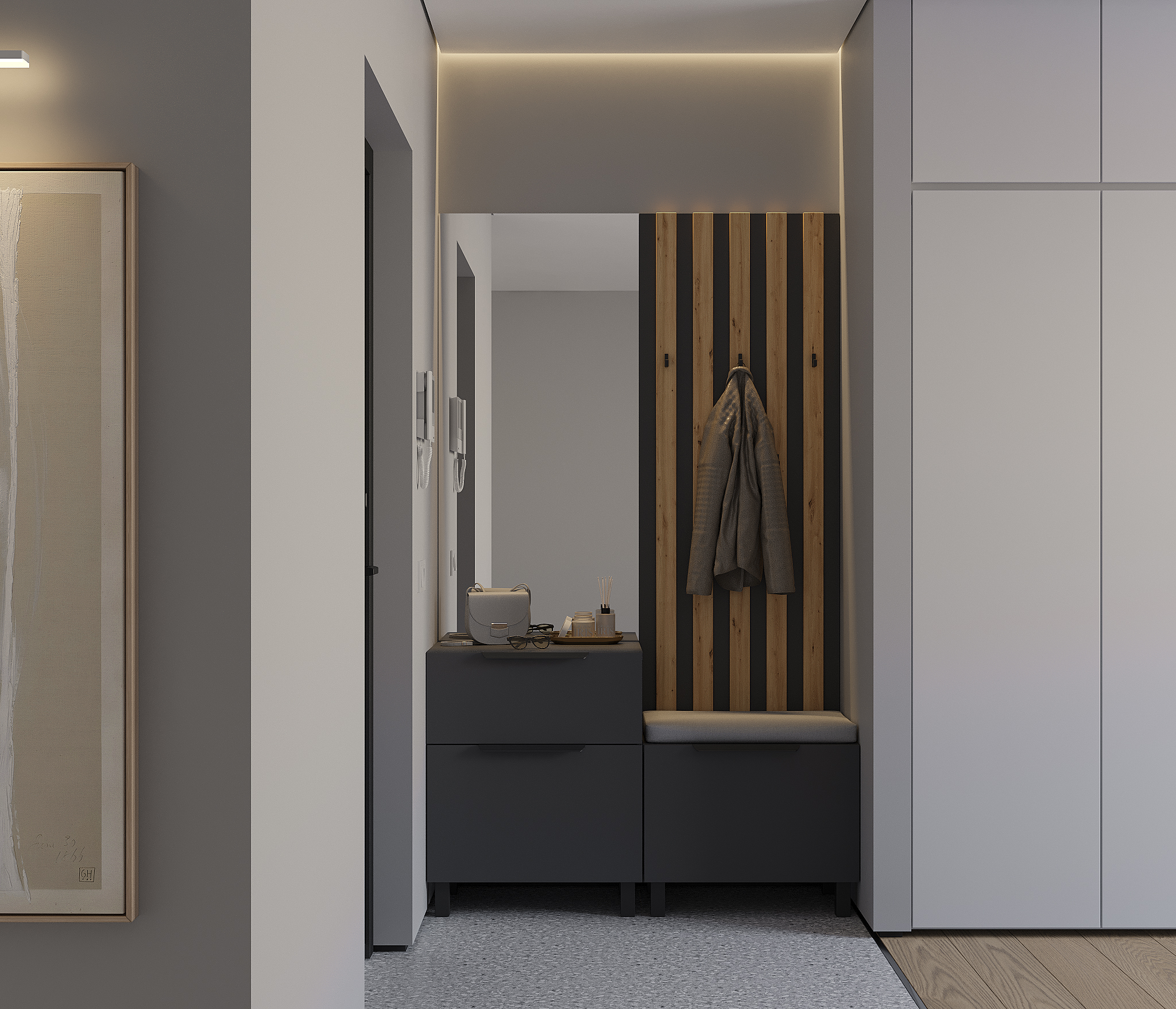Прихожая Тренд с рейками Диамант серый Код 00000331358