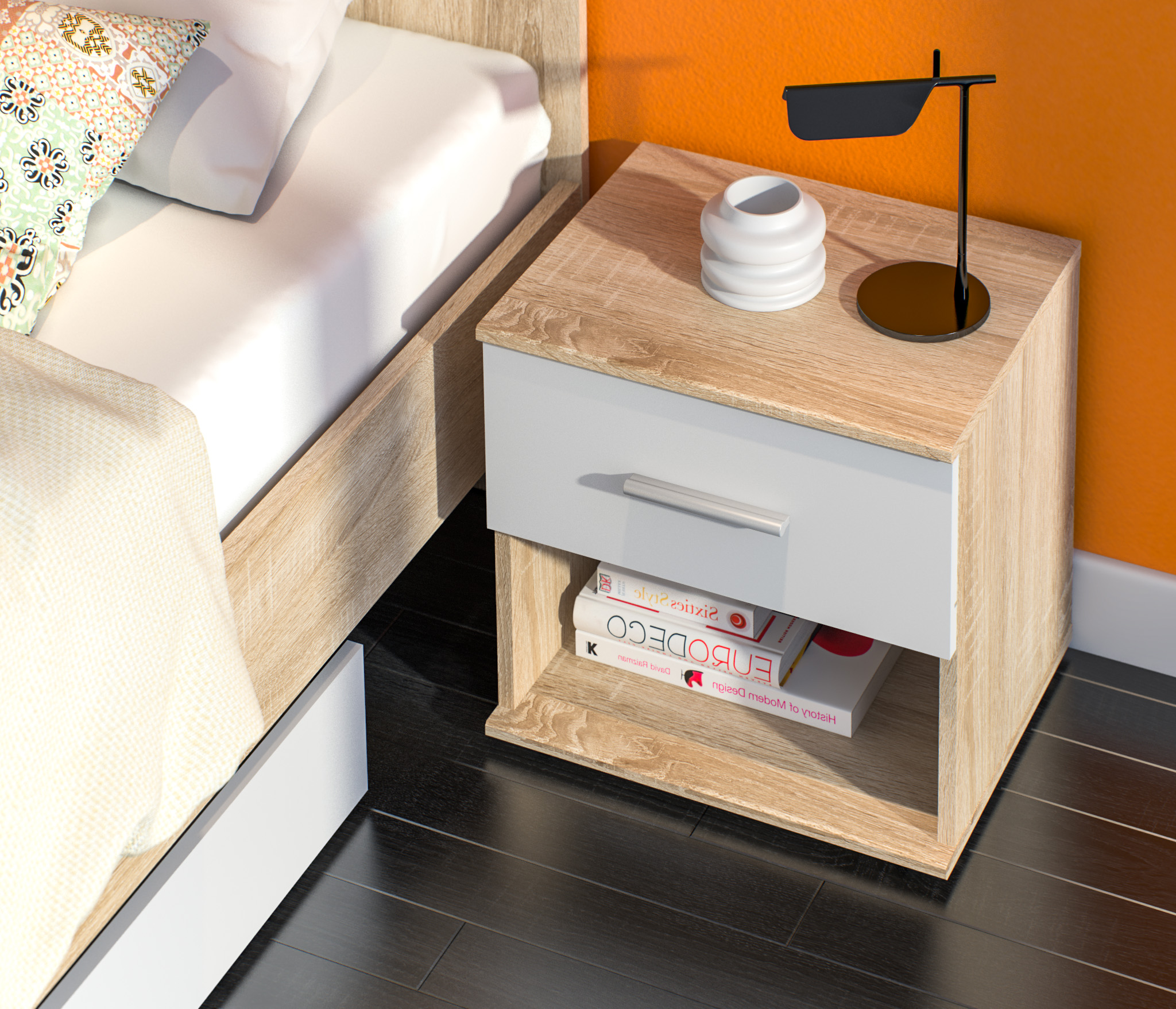 Мамбо СБ-2683.Н Тумба прикроватная Дуб Сонома/Белый