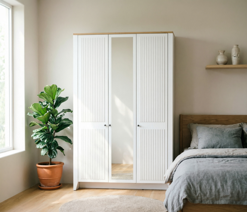 Шкаф 3х дверный Монтана СБ-3544 Белый Альпийский,Дуб Гамильтон/МДФ Дуб Белый Код 00000331120