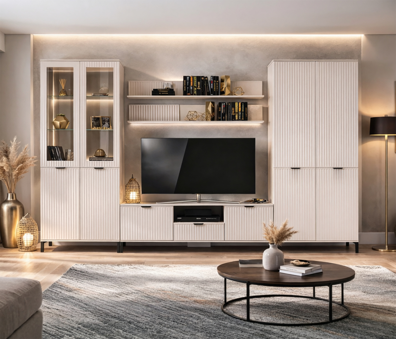 Набор для гостиной с двумя витринами Турин Кашемир серый/МДФ Кашемир (Кашемир серый)