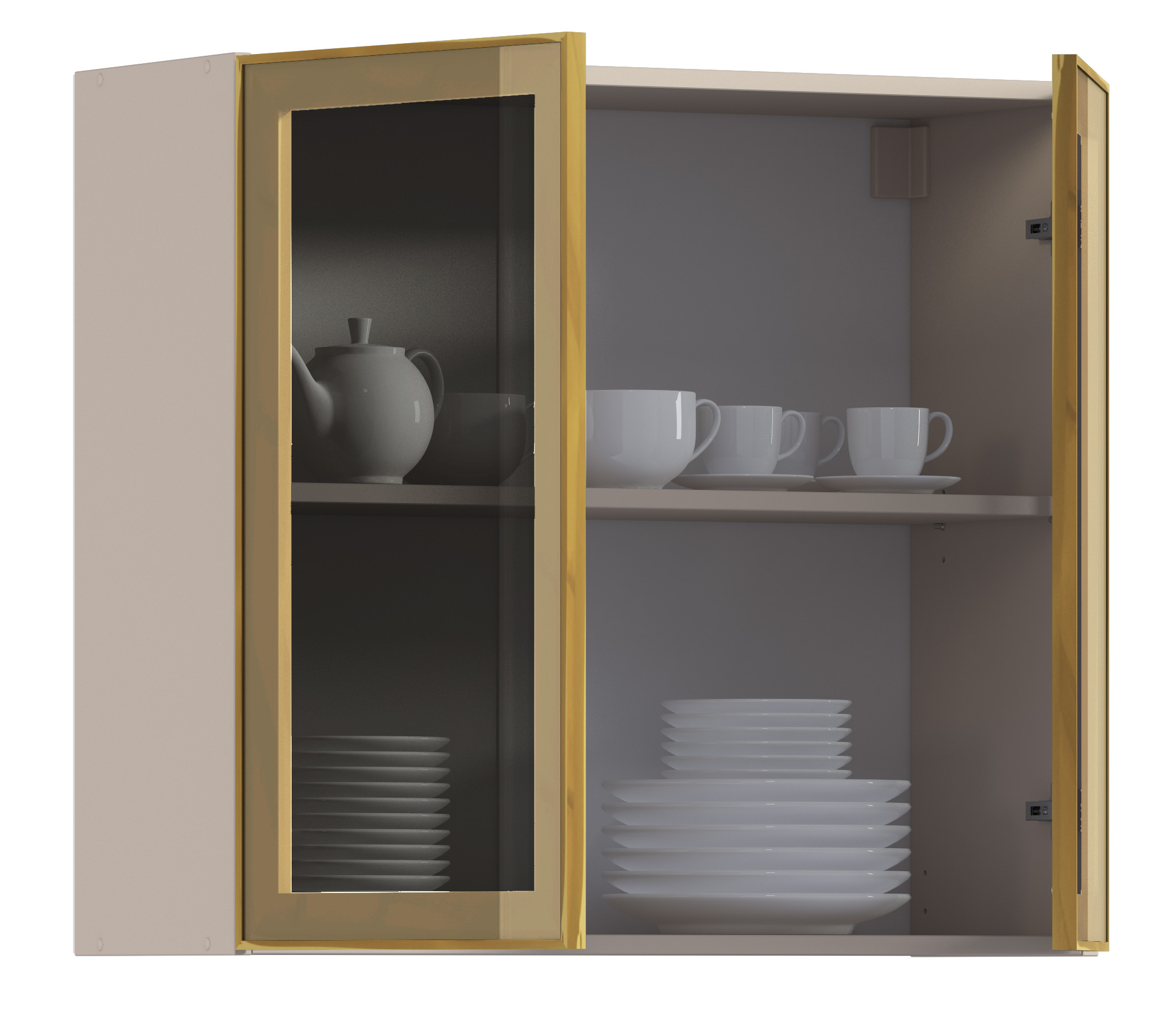Навесной шкаф Регина РП-80 (Песочный/Витрина Золото) (Золото)