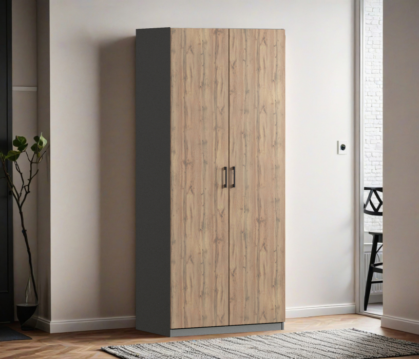 Шкаф двухдверный Макс 1000 мм, вариант №1 (ЛДСП) (Дуб вотан/Диамант серый)