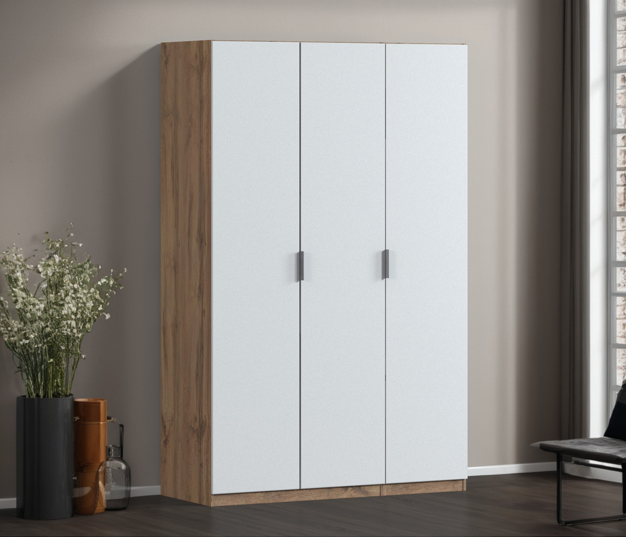 Шкаф трехдверный Макс 1500 мм, вариант №1 (ЛДСП, корпус дуб вотан) (Белый Альпийский)