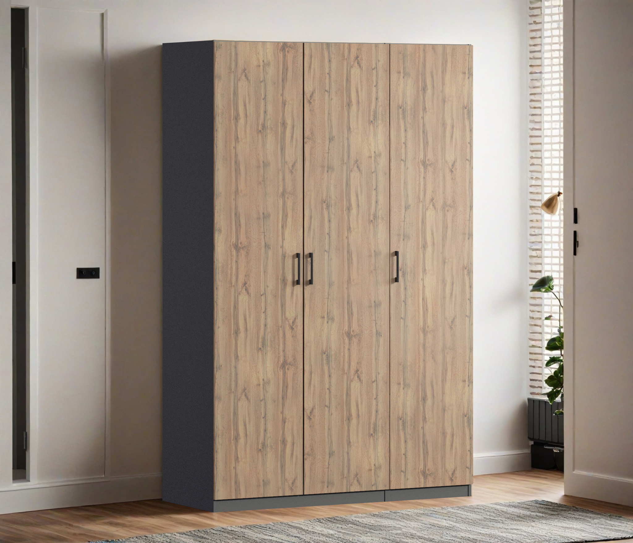 Шкаф трехдверный Макс 1500 мм, вариант №3 (ЛДСП) (Дуб вотан/Диамант серый)