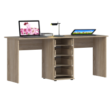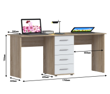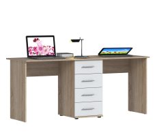 Стол-тумба Мамбо СБ-2753 – продуманное и комфортное рабочее место. Идеальный вариант, если есть необходимость в двух письменных столах. Простая конструкция, светлый оттенок и лаконичный дизайн позволят без проблем разместить стол-тумбу Мамбо в детской, комнате школьника или студента, а также в кабинете. Габаритные размеры – ширина 176 см, высота 75 см и глубина 59 см. Посередине под рабочей поверхностью расположена тумба с четырьмя вместительными выдвижными ящиками. Стол произведен из современного экологичного КДСП. Корпус и рабочая поверхность выполнены в цвете «Дуб Сонома», фасадные поверхности в белом цвете.