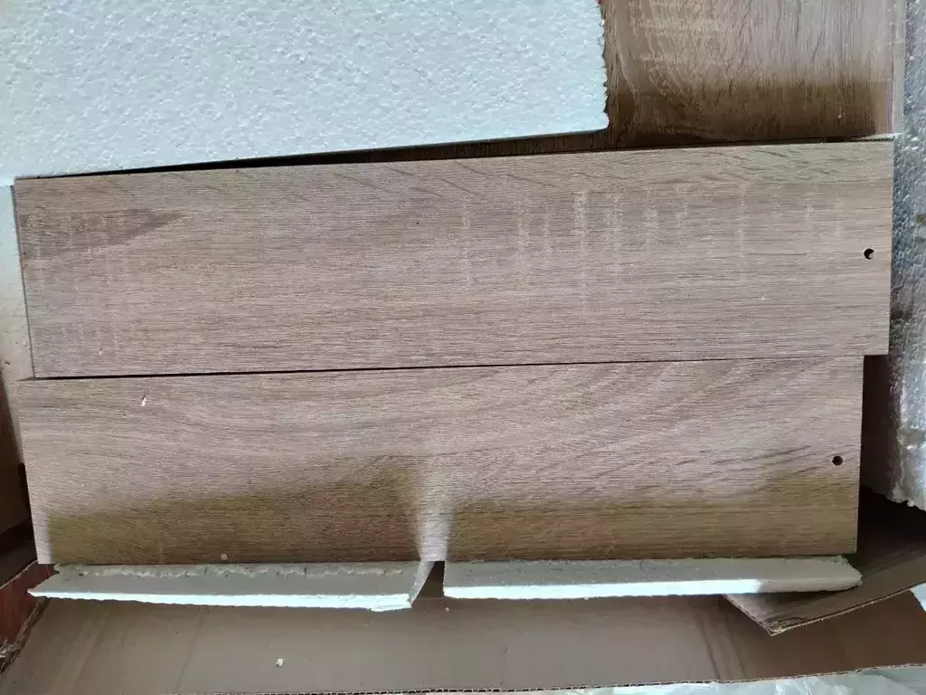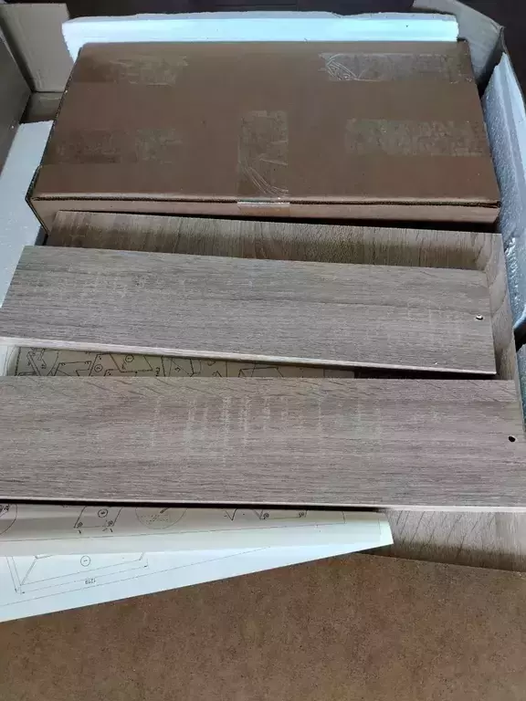 Во-вторых сколы: сколы на верхней доске, будто бы точечно содрали покрытие, скол на одной из полок и при сборке треснула другая полка.