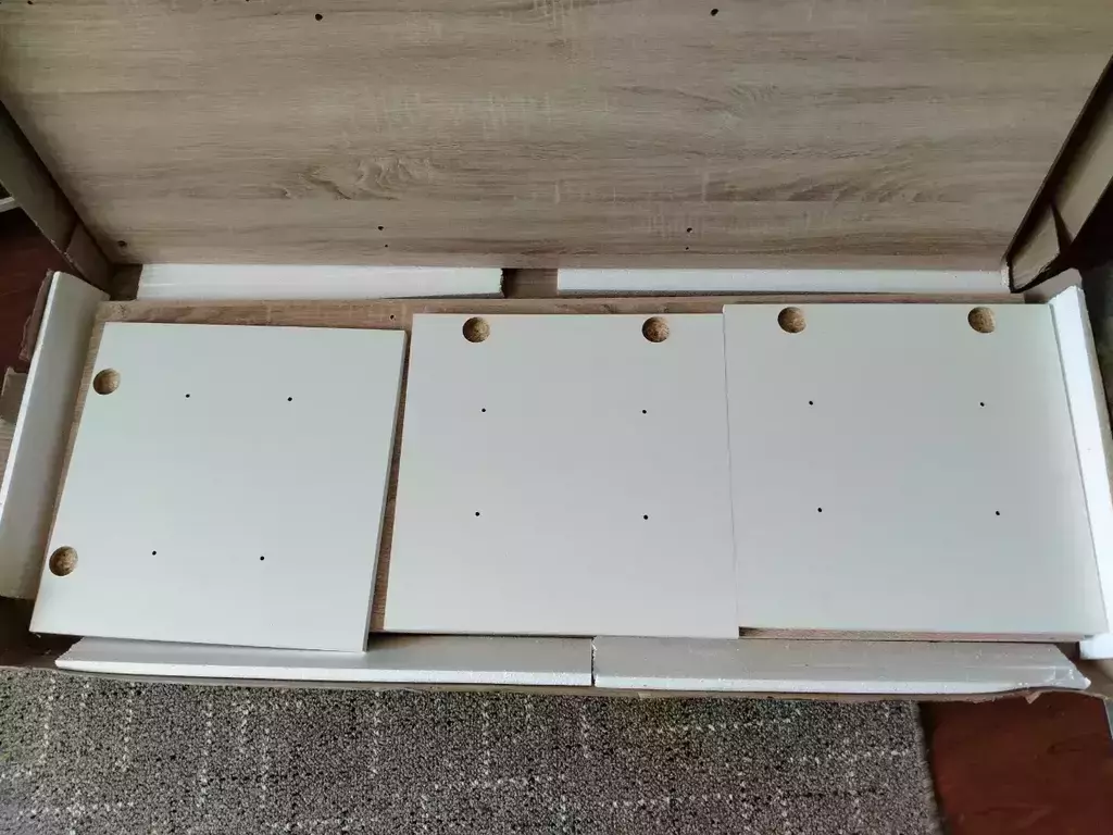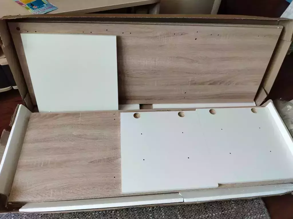 Во-первых запах от мебели стоял очень сильный, раньше мы брали и такого не было, в комнате можно было спать сразу после сборки, в этот раз выветривали неделю.