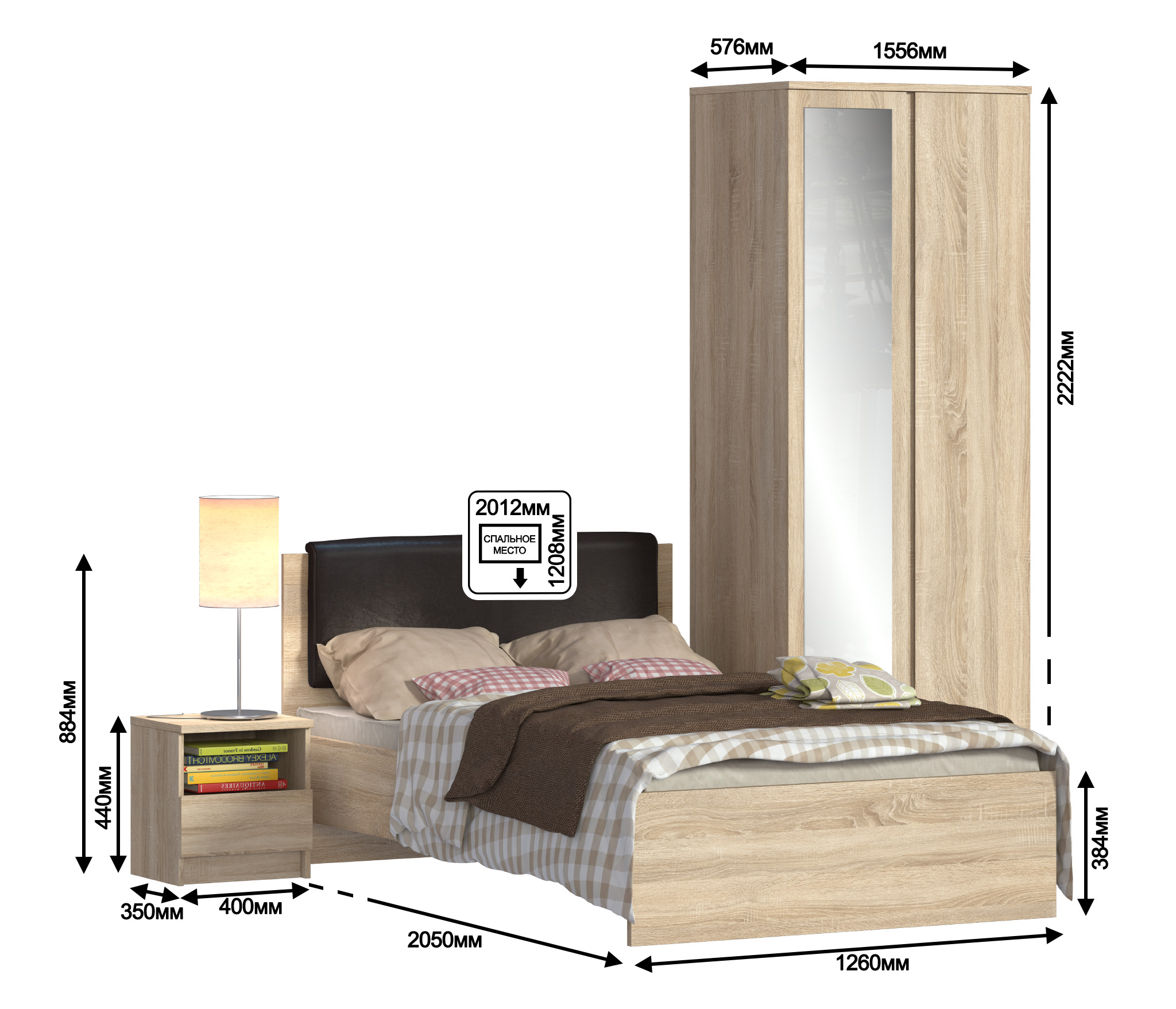 Веста СБ-2262 Кровать (1200) Дуб СономаВеста СБ-2257 Тумба прикроватная Дуб Сонома