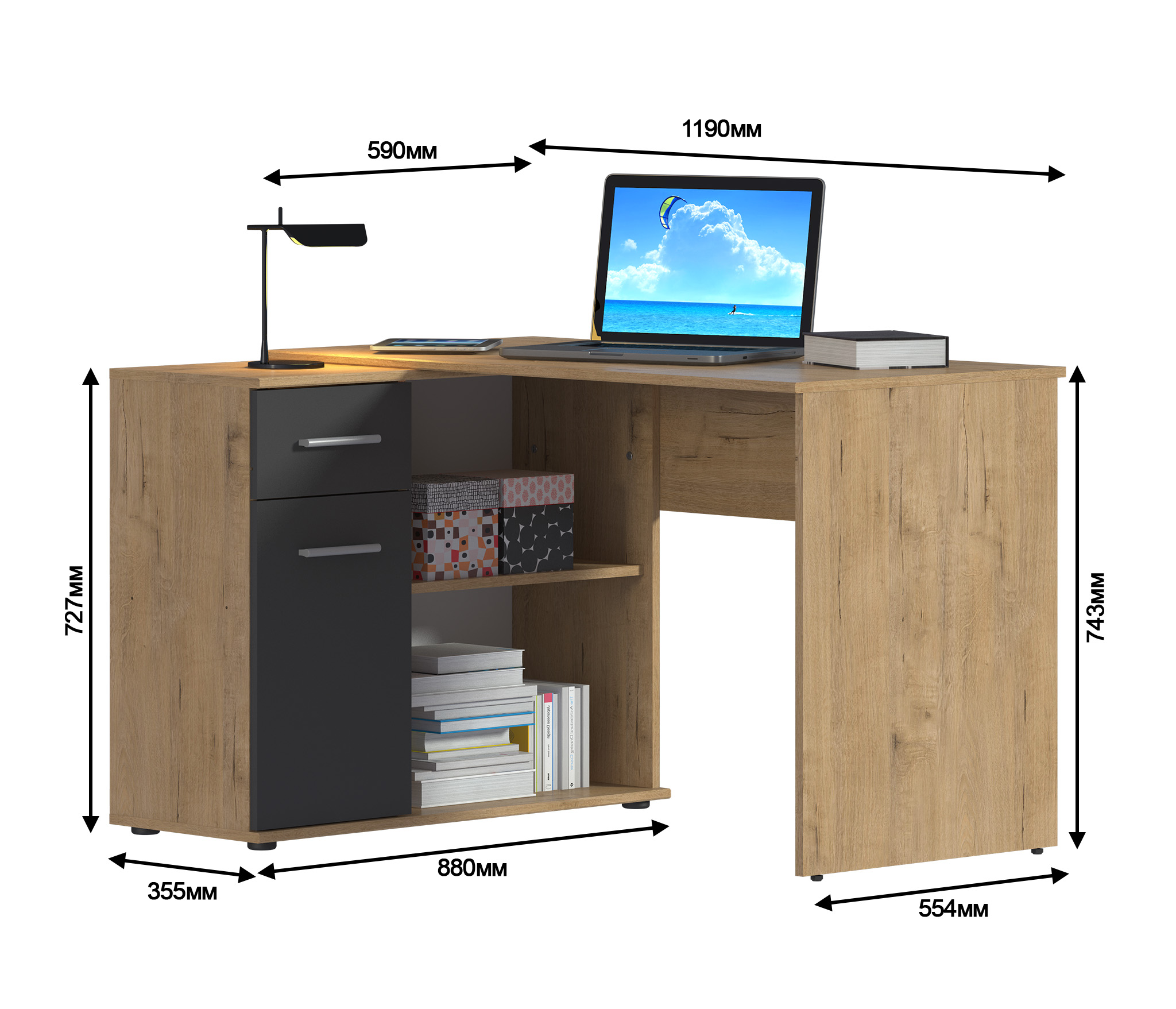 Стол-тумба Мамбо СБ-2886 – продуманное и комфортное рабочее место. Идеальный вариант, если есть необходимость в двух письменных столах. Простая конструкция, светлый оттенок, лаконичный угловой дизайн позволяют без проблем разместить стол-тумбу Мамбо в детской, комнате школьника или студента, а также в кабинете. Габаритные размеры – ширина 119 см, высота 74 см и глубина 91 см. Под рабочей поверхностью расположена тумба с открытыми вместительными полками, а также выдвижной ящик и закрытое отделение с отдельной дверцей. Стол произведен из современного экологичного КДСП. Корпус и рабочая поверхность выполнены в цвете «Дуб Сонома», фасадные поверхности в Белом цвете. Возможен как левый, так и правый вариант сборки.