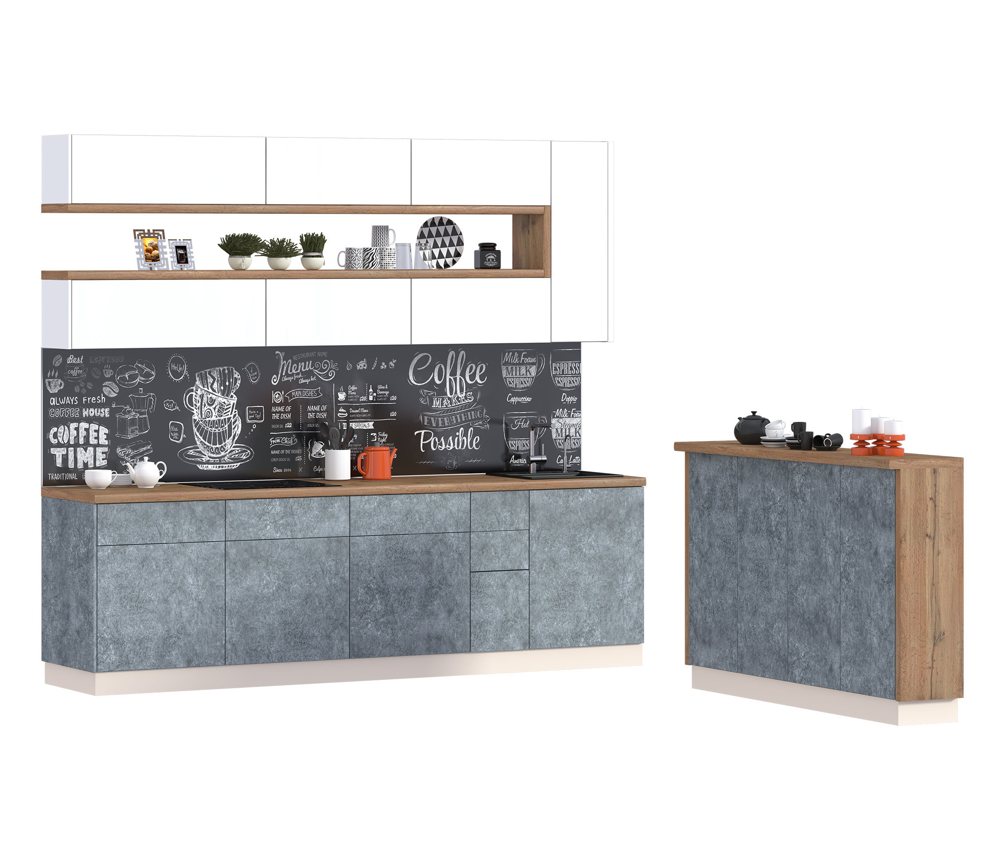 Регина (Лофт) Бетон/Белый глянец Код 00000243984