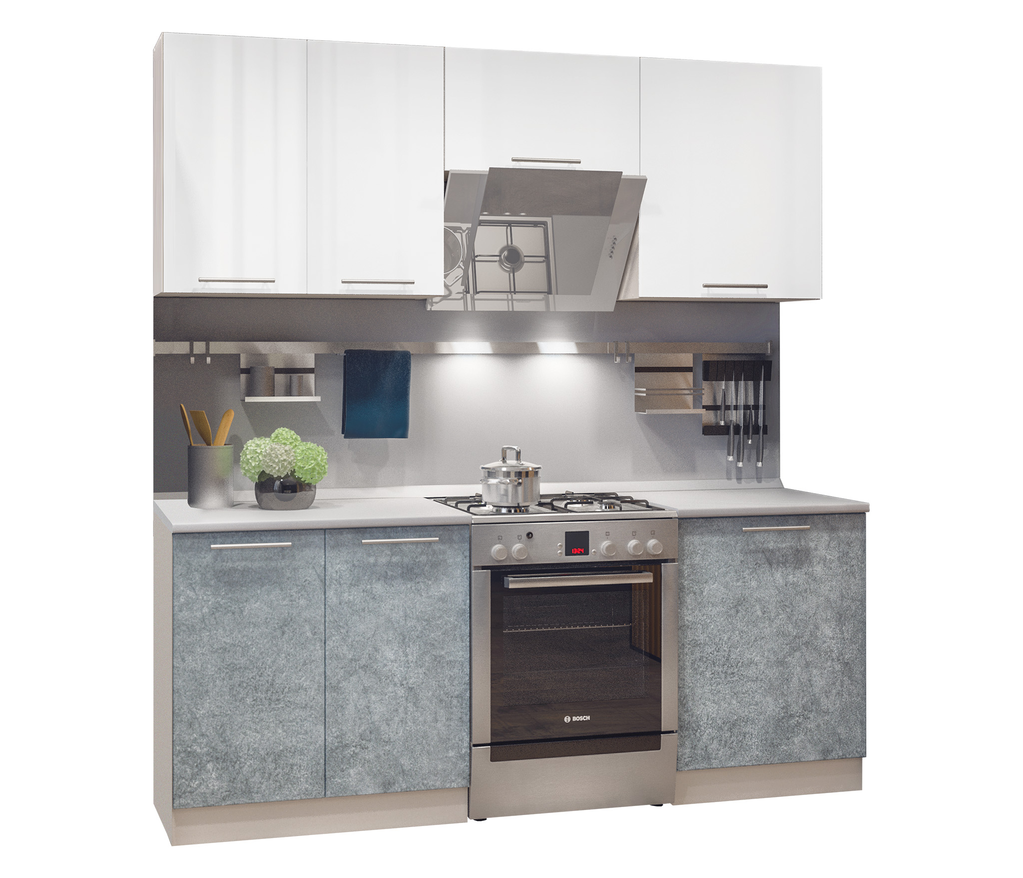 Кухонный гарнитур Регина Песочный / Белый глянец, Бетон серый 2 м (Бетон серый)