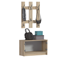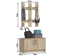 Прихожая Терра СБ-2555 оптимально впишется в интерьер небольшой прихожей. Этот функциональный модуль позволит аккуратно разместить одежду, сумки и головные уборы. Может быть дополнена другими модулями из коллекции Терра. Состоит из тумбы для обуви и вешалки с шестью крючками. Габаритные размеры тумбы для обуви – ширина 79 см, высота 45,6 см и глубина 35,3 см. Размеры настенной вешалки – ширина 62,7 см, высота 79 см и глубина 2,2 см. Производится комплект из экологичного ЛДСП. Оформленная в светлом цвете прихожая не создаст впечатление громоздкости.