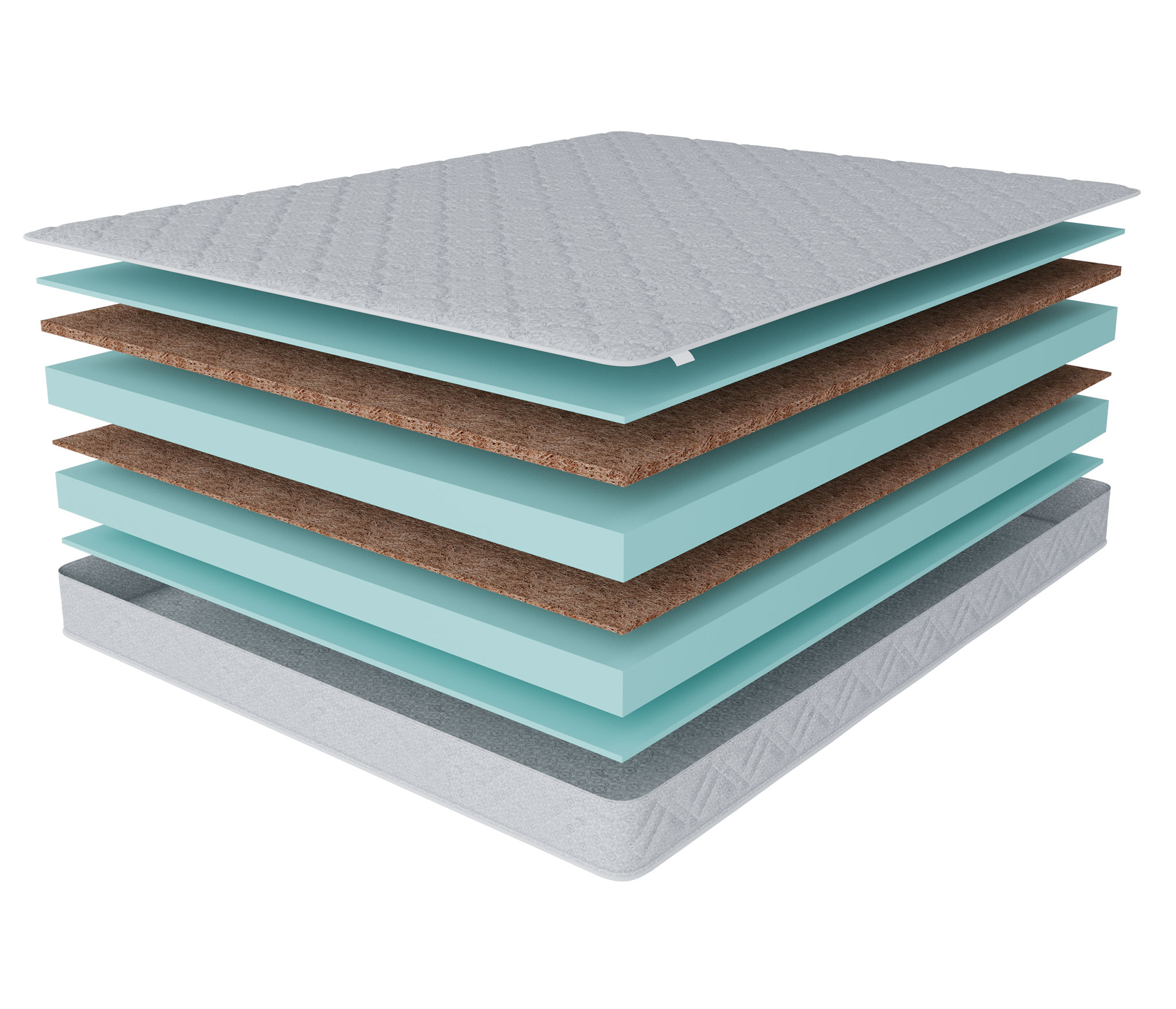 Матрас состоит из комбинации высокопрочных пен и кокосовых матов, что создает уникальное сочетание комфорта и надежности. Данная модель понравится тем, кто предпочитает жесткие матрасы, но при этом одна из сторон более упругая, а другая более жесткая. Ткань чехла матраса не поддерживает горение, что обеспечит дополнительную безопасность. Это отличная классическая модель беспружинного матраса, отвечающая всем современным требованиям. Материалы матраса обладают превосходной воздухопроницаемостью, что обеспечивает высокую степень термального комфорта как в зимние, так и в летнее время.При выборе матраса следует помнить о том, что любой матрас не отвечает за правильность положения головы и шеи, их здоровье зависит от правильно подобранной ортопедической подушки. Для увеличения срока службы матраса рекомендуется его использование с защитным чехлом AquaStop.