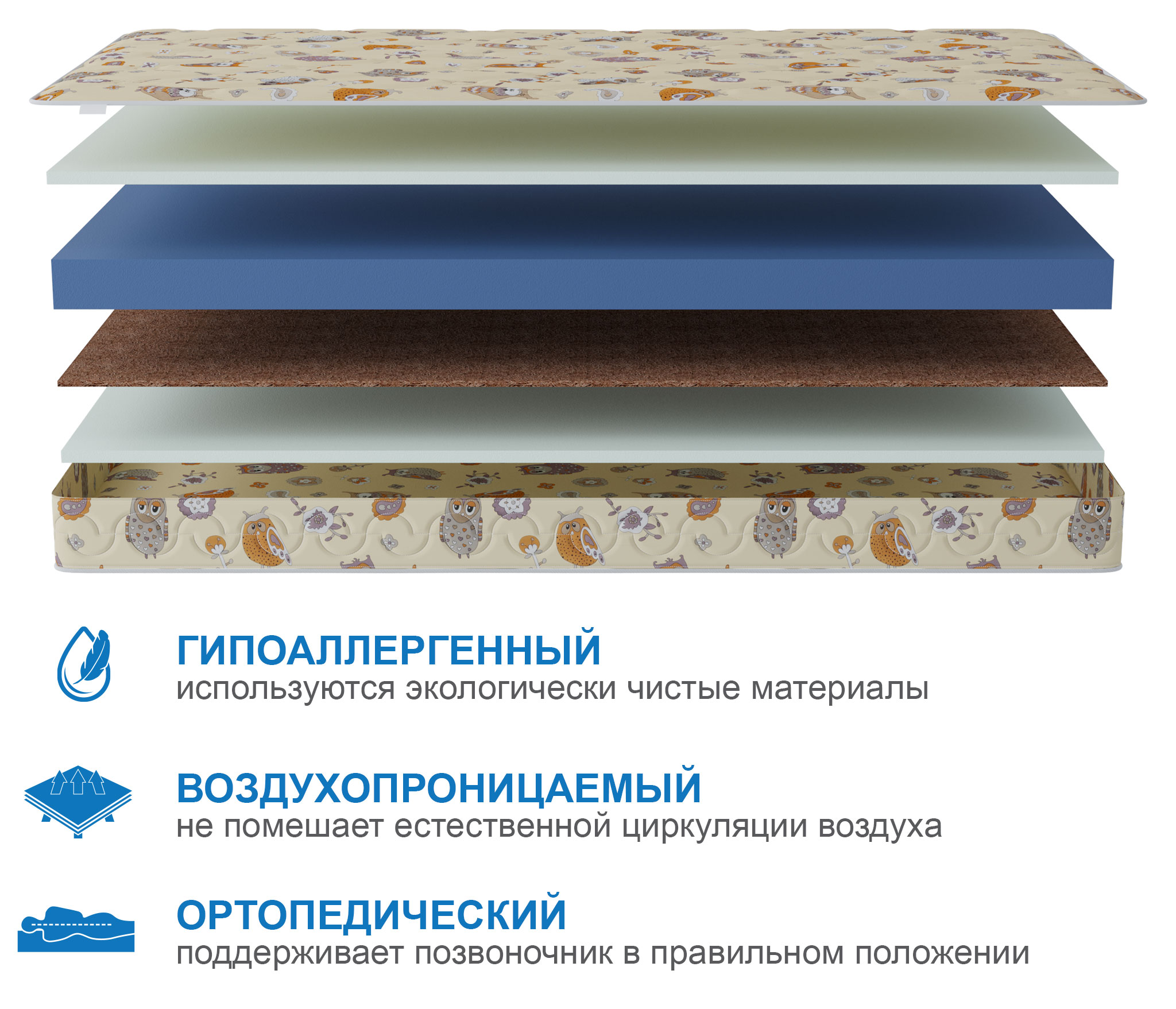 Мммм, бесподобный матрас. Так удобно, что у него две стороны. Одна жесткая из койры, вторая мягкая из латекса. Меняем периодически дочери, и это между прочим полезно. Нам педиатр сказал так. Изготовлен качественно, не к чему придраться.