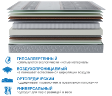 Одна из пластей данного матраса изготовлена из ткани в которую встроены магнитные полосы. Магнитное излучение аналогично тому, которое используется в кабинетах физиотерапии, но гораздо слабее по интенсивности. Благодаря этому, такой матрас обладает общим физиотерапевтическим эффектом, замедляющим развитие хронических заболеваний суставов и опорно-двигательного аппарата, дополнительным эффектом, которым обладает такой матрас является нормализация фаз сна, а именно увеличение продолжительности фазы глубокого сна, а также он сокращает время засыпания. Суть системы заключается в том, что люди проводят во сне достаточно много времени, которым можно воспользоваться дополнительно. В обычной жизни, сколько времени каждый из нас готов потратить на посещение физиотерапевта? В худшем случае после травмы 10 посещений по 15 минут. А в случае сна на таком матрасе, каждый получает регулярные процедуры, с гораздо меньшим разовым эффектом, но накопленным итогом, при регулярном использовании, в течение нескольких месяцев общий эффект будет на много больше. Данная ткань прошла все испытания и абсолютно безопасна для всех, и для детей, и для техники. Чтобы убедиться самим, в наличие данных свойств, достаточно скачать в свой телефон любое приложение, которое позволяет измерять магнитное поле Measuring Tools, Tesla Meter или любую другую, прислонить телефон* к пласти матраса и поводить им в разные стороны. Вы увидите изменения графика интенсивности магнитного поля, и конкретные цифры показывающие силу магнитного поля, эта информация пригодится самым пытливым и въедливым покупателям, которые смогут проверить достоверность информации используя, интернет. *в телефоне должен быть датчик Холла, наличие данного датчика можно проверить в описании своего телефона на любом из сайтов ( в большинстве современных моделей он есть). С обеих сторон матраса в качестве комфортного слоя используется 2 см искусственного латекса, этот материал очень долговечный и упругий, благодаря этому слою на этом матрасе будет одинаково комфортно людям разных весовых категорий. Для распределения нагрузки и придания необходимой жесткости используется латексированный кокосовый лист, который кладется под латекс. В основе матраса лежит блок независимых пружин, благодаря которому матрас будет индивидуально подстраиваться под каждого спящего и оказывать обратное давление только там, где это действительно необходимо. Чехол матраса сделан из плотного мягкого трикотажа, который стегается на 15 мм пене и синтепоне, что добавляет не много мягкости. Обращаем ваше внимание на то, что любой матрас отвечает за правильность положения во время сна нижнего и среднего отделов позвоночника, а за правильность положения шейного отдела отвечает правильно подобранная ортопедическая подушка. Рекомендуем использование с защитным чехлом AquaStop. |