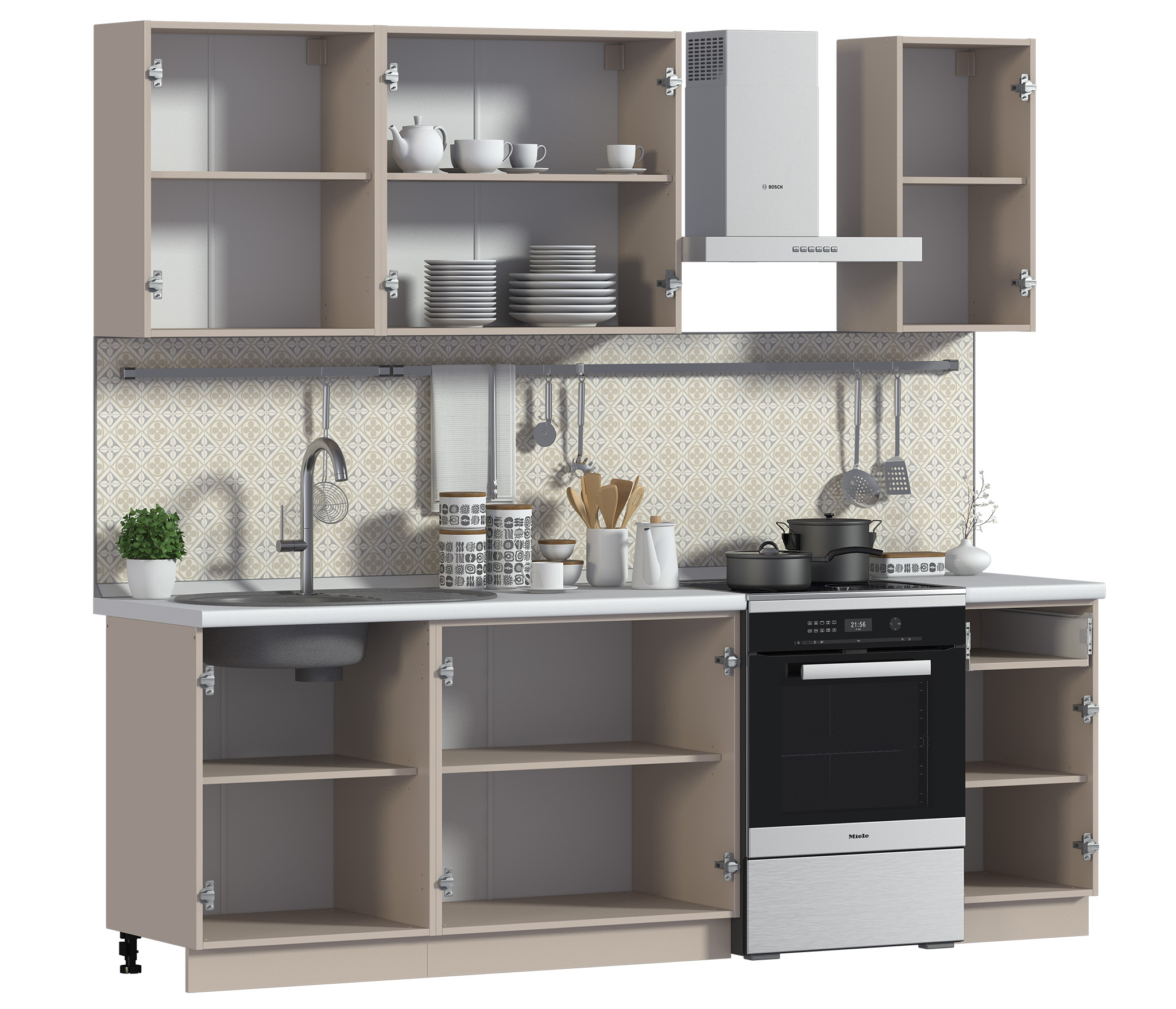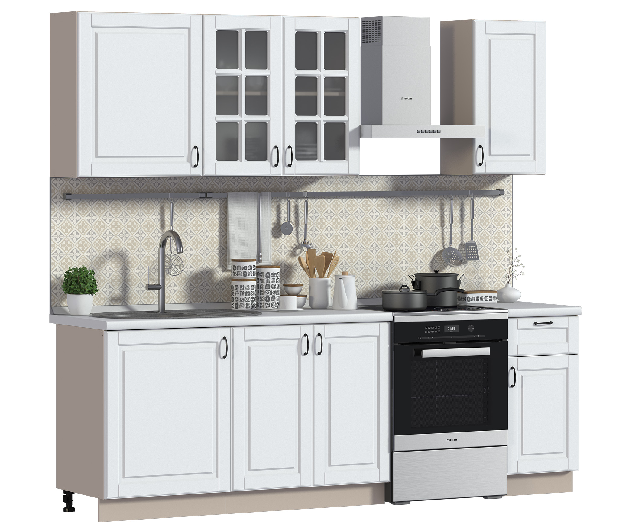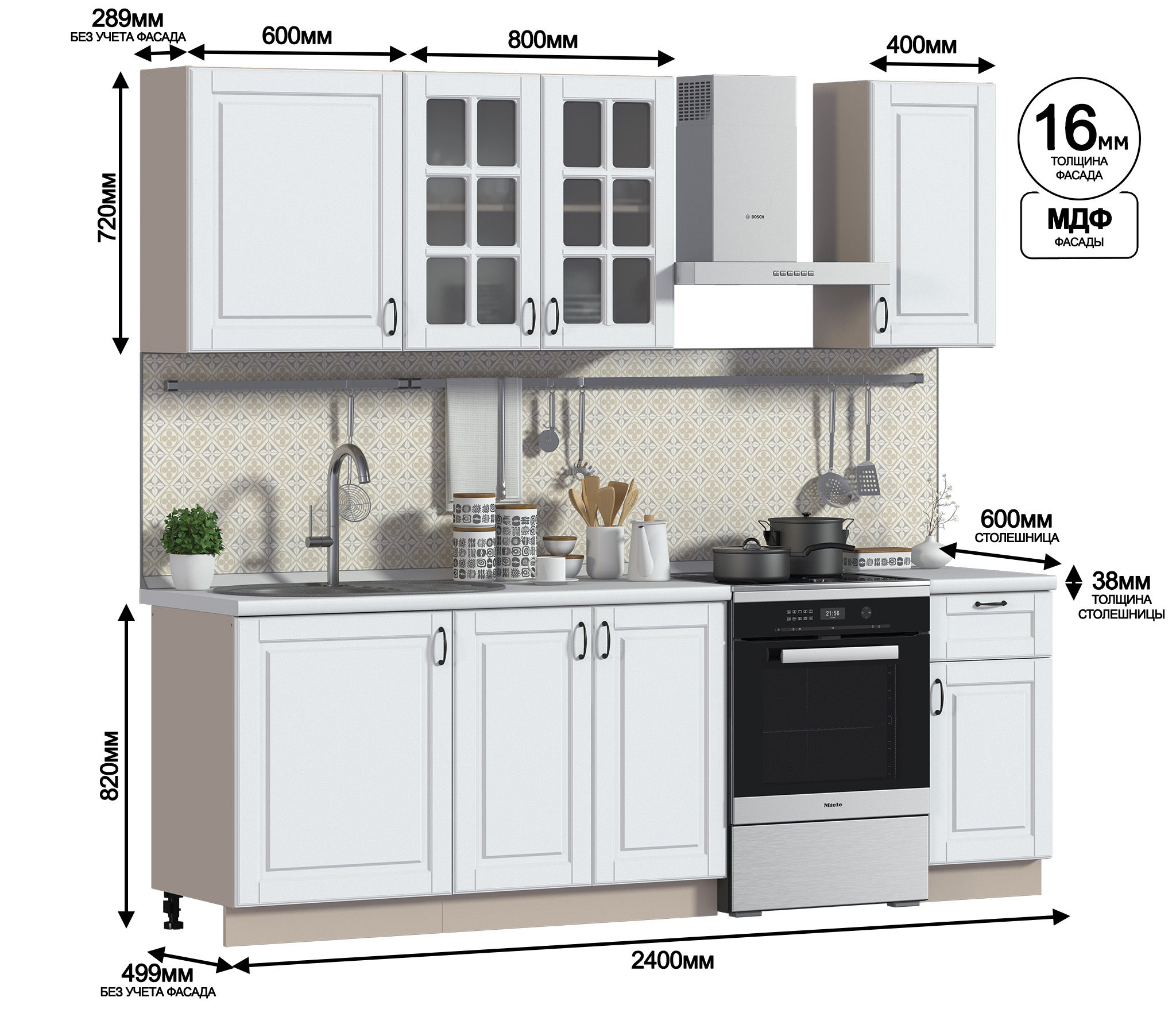 Обратите внимание:столешница,стеновая панель,цоколь,аксессуары,бытовая техника, мойка и сушка для посуды в комплект не входят, их необходимо приобретать отдельно.