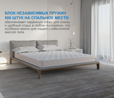В основе данной модели лежит блок независимых пружин, данный тип пружин гарантирует правильную поддержку позвоночнику спящего, т.к. пружины работают независимо друг от друга, то обратное давление будет оказываться только там где это действительно нужно. Для защиты комфортных слоев матраса используется специальное термоволокно, которе предотвращает истирание слоев во время эксплуатации. Латексированный кокос, используемый в этой модели, в качестве основного комфортного слоя, делает одну из сторон более жесткой по отношению к другой, что дает вариативность и страхует от ошибки при выборе жесткости. Вторая сторона матраса усилена особо прочной и упругой пеной, которая позволит хорошо высыпаться.. Обращаем ваше внимание, что матрас отвечает за правильность положения нижнего и среднего отделов позвоночника, а за шейный- отвечает правильно подобранная ортопедическая подушка. Для увеличения срока эксплуатации матраса рекомендуем приобрести защитный чехол AquaStop.