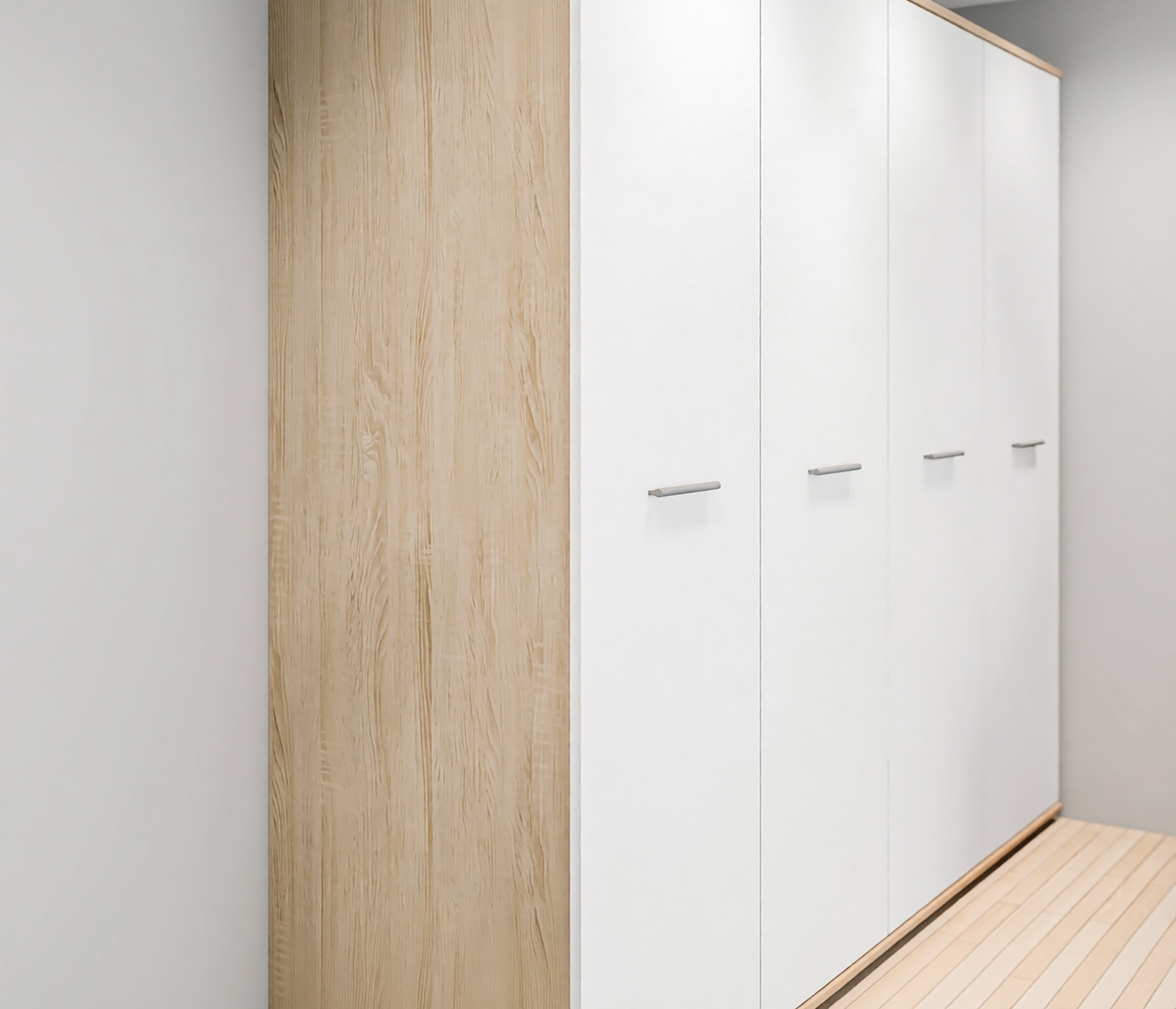 Купили такой шкаф в детскую. Все вещи поместились и зимние и летние. смотрится очень симпотично.