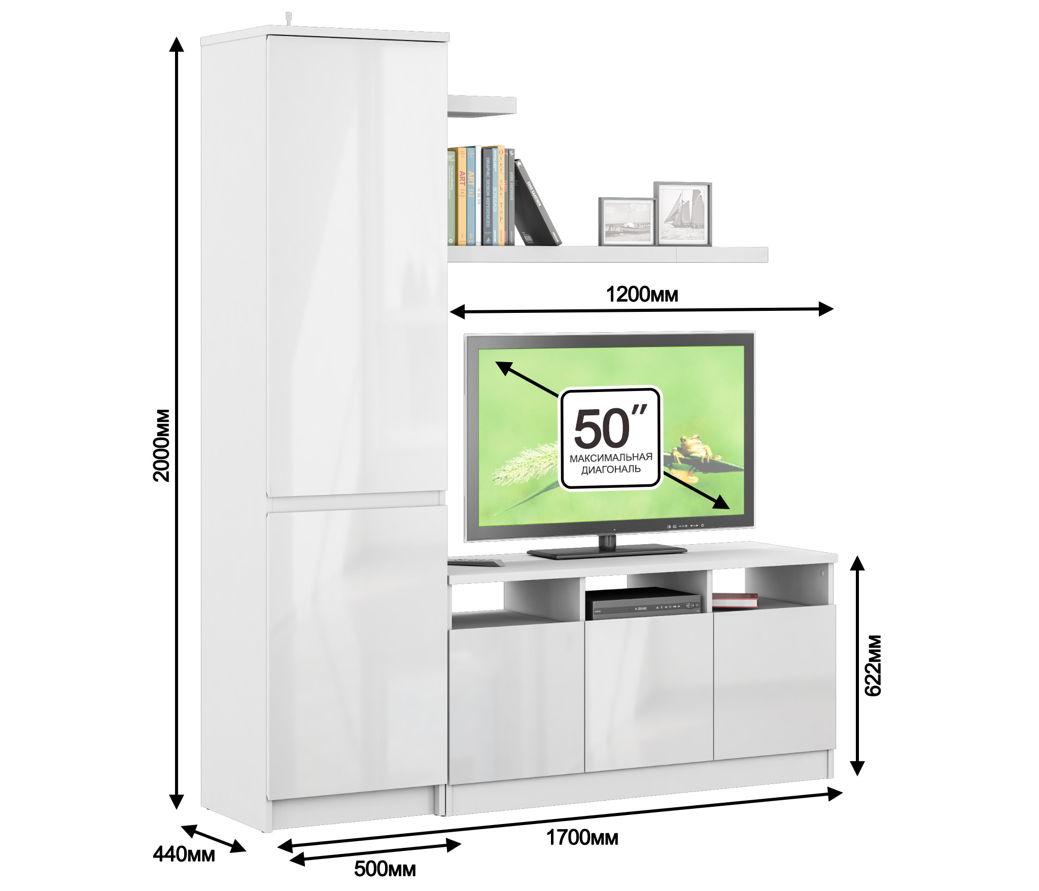 Размер ТВ тумбы: Д1200 В622 Г440.