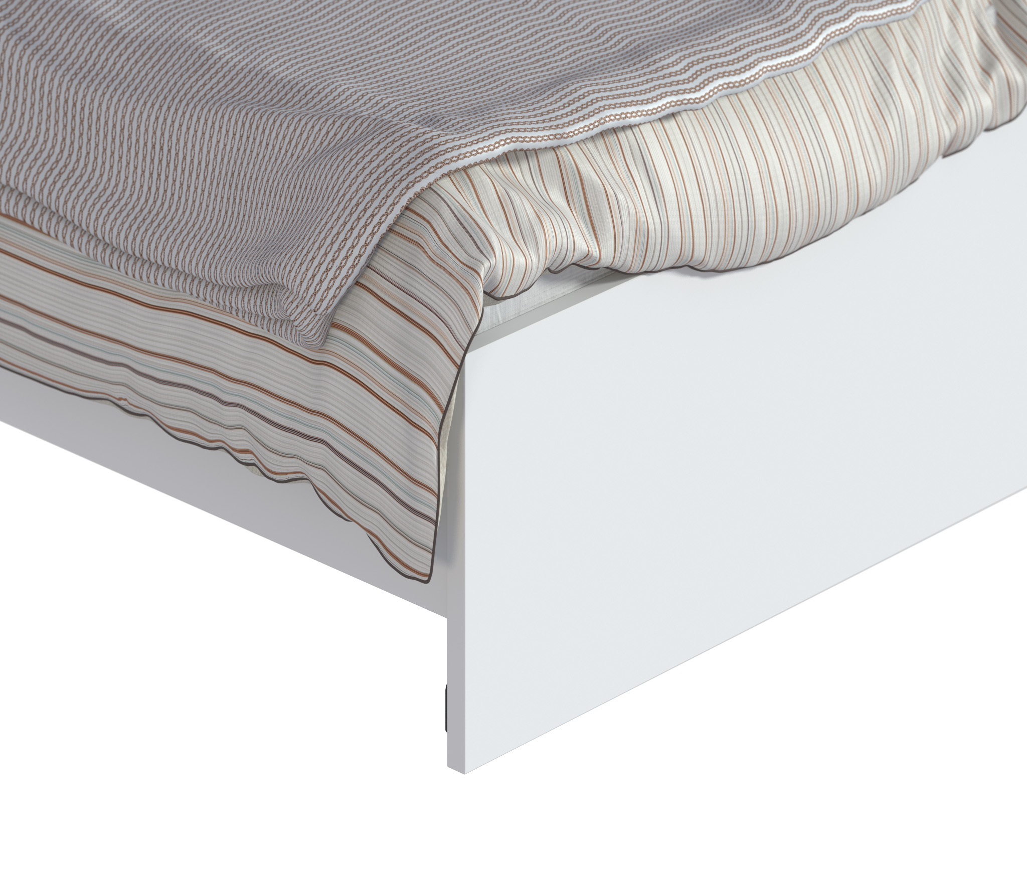 Произведена кровать из прочного и экологичного ЛДСП. Материал отделки короба в Белом цвете, произведен в соответствии с новыми технологиями, безопасный, не несет вред для здоровья и для окружающей среды.