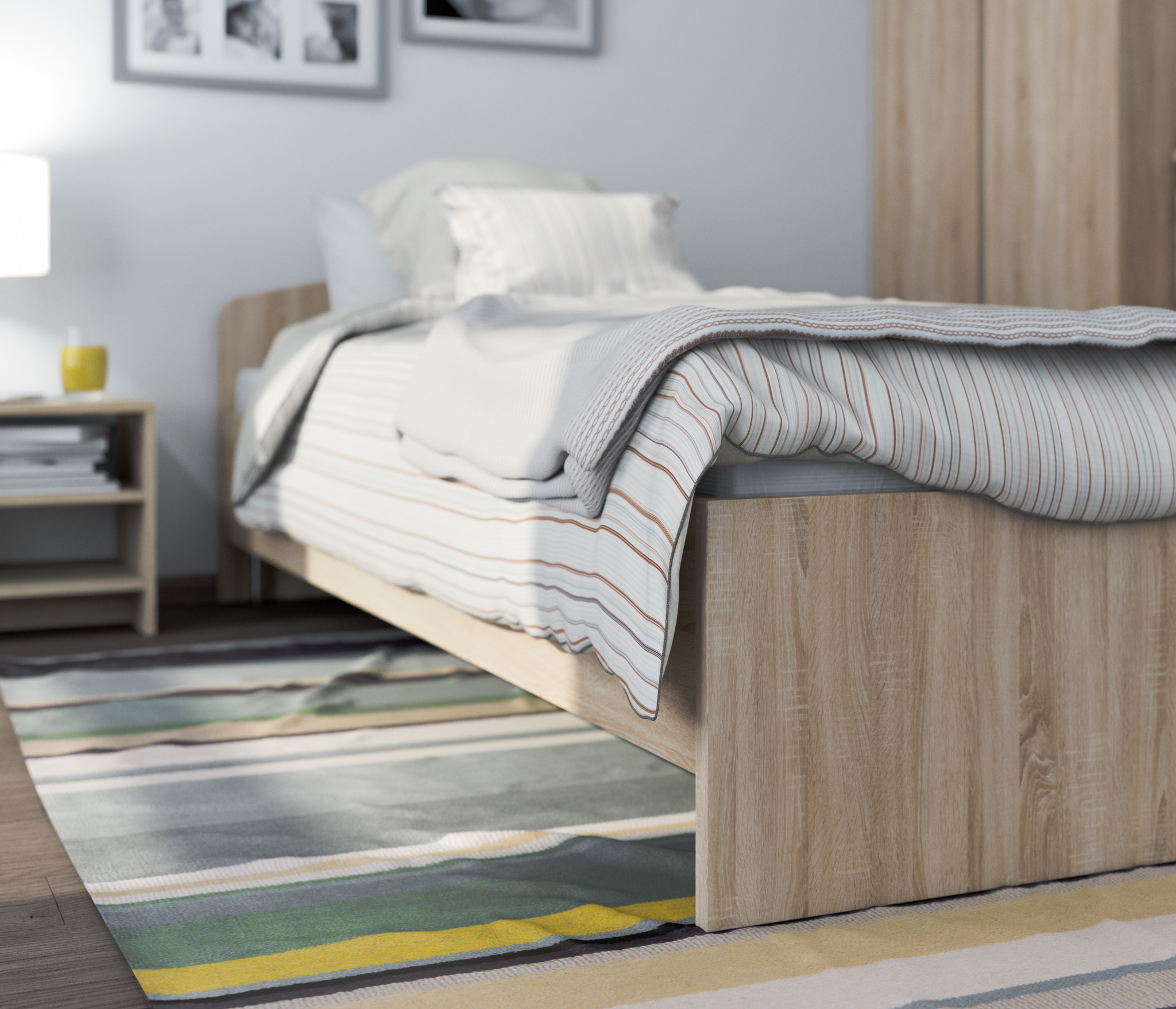 Кровать очень удобна для спальни, так и для детской комнаты, так как она занимает мало места.