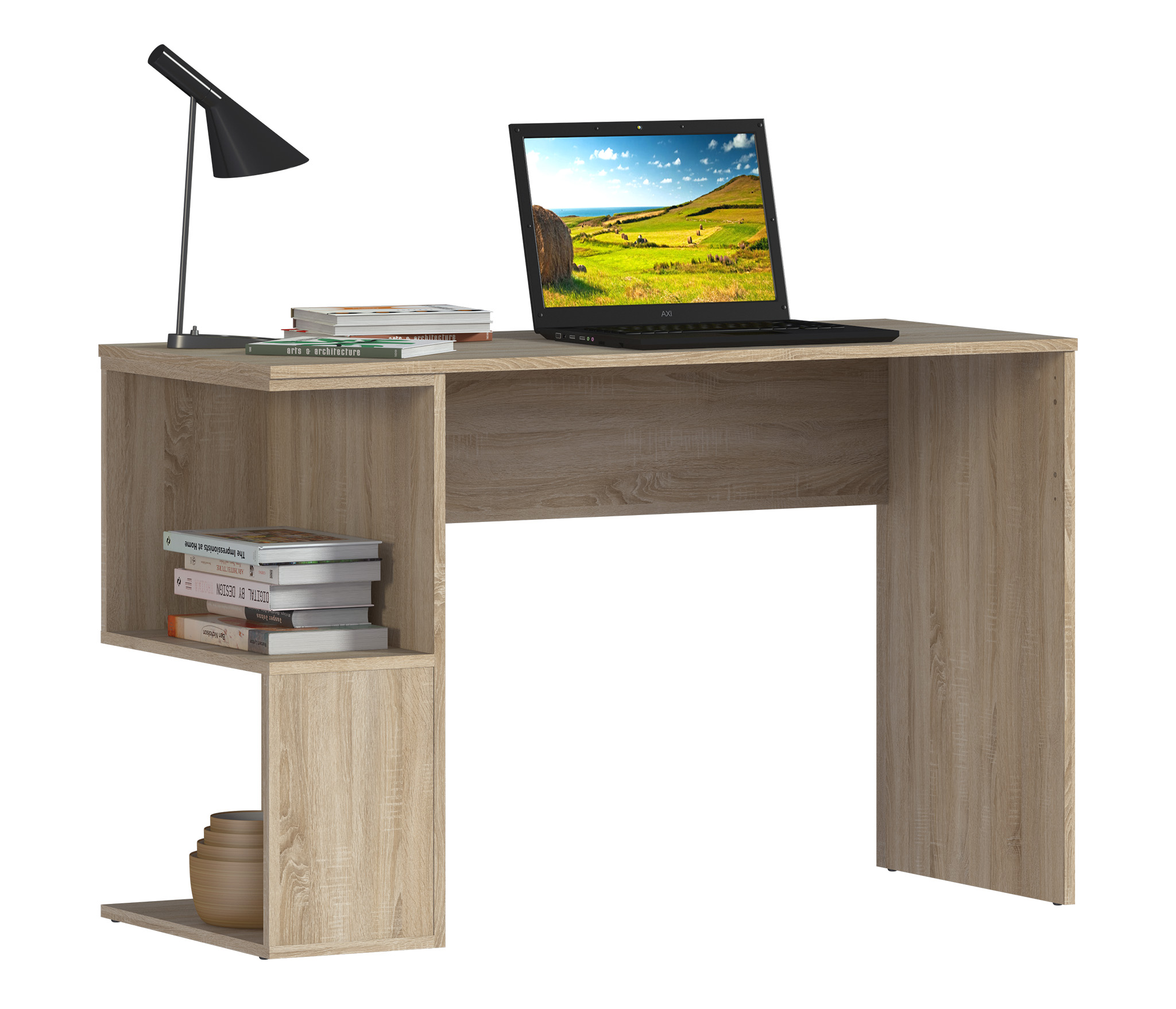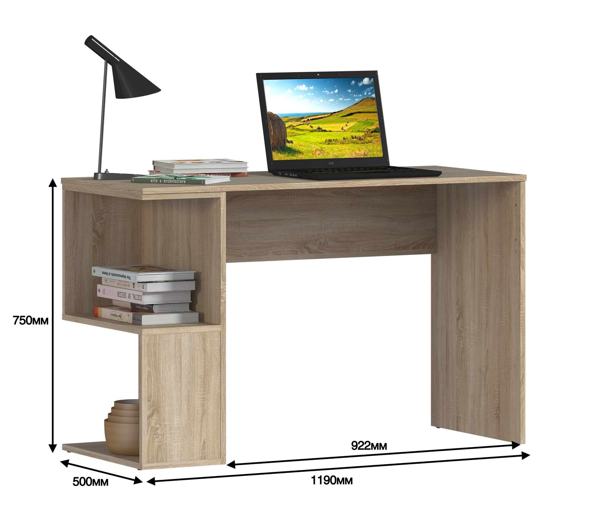 Стол Кито СБ-3212 можно рассматривать как отдельный предмет мебели, а можно стилизовать его в гарнитуре. Стол достаточно компактен – ширина 119 см, высота 75 и ширина 50 см. Под рабочей поверхностью расположена открытая тумба с отделениями для хранения книг, журналов, документов. Стол Кито цвета Дуб Сонома выполнен в лаконичном, современном, стиле и будет органично смотреться как в комнате школьника или студента, так и в кабинете или офисе. Материал отделки КДСП устойчив к влаге, что актуально для белых предметов мебели.