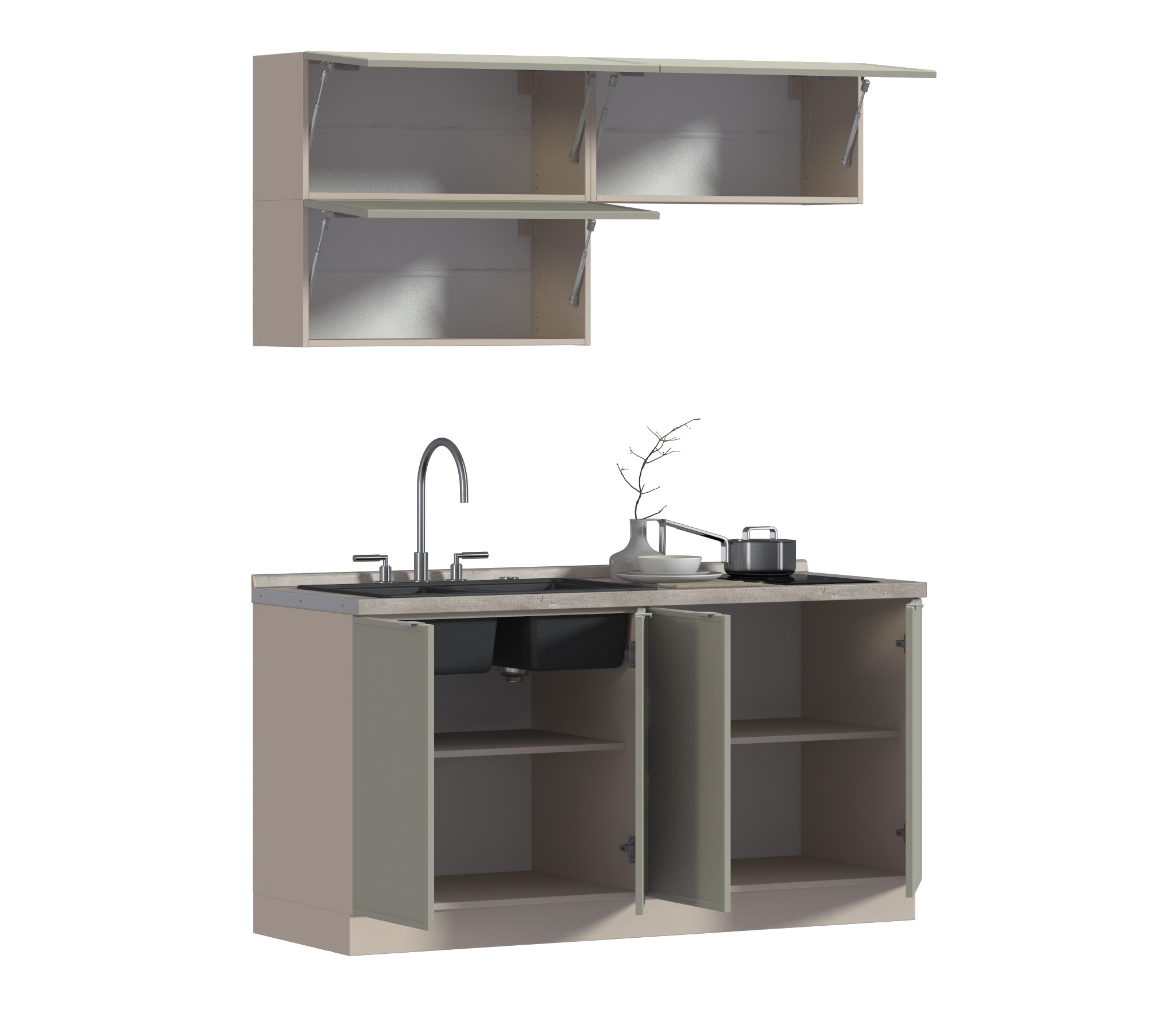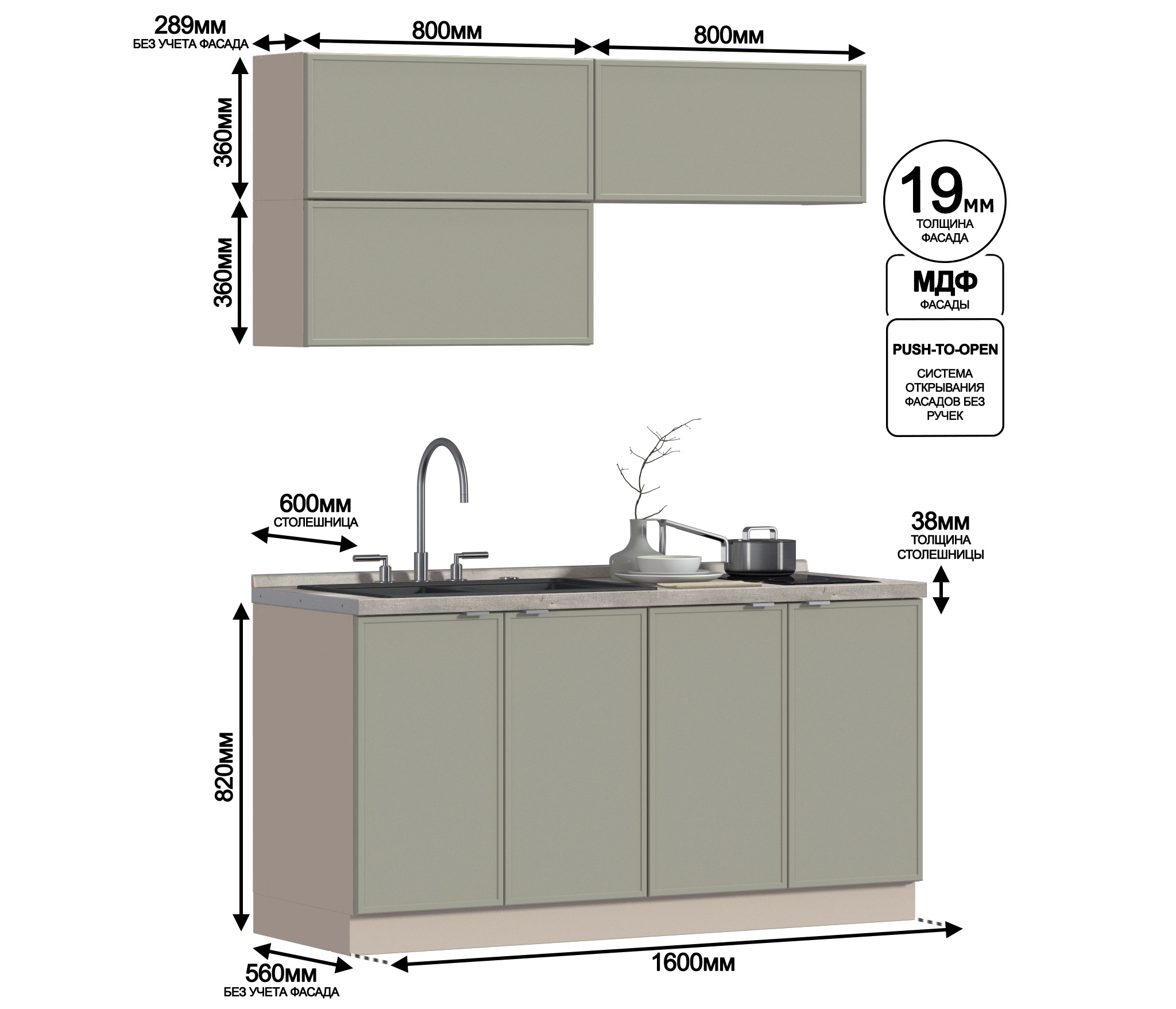 Кухонный гарнитур Регина Квадро Песочный / Латте 1,6 м Код 00000286977