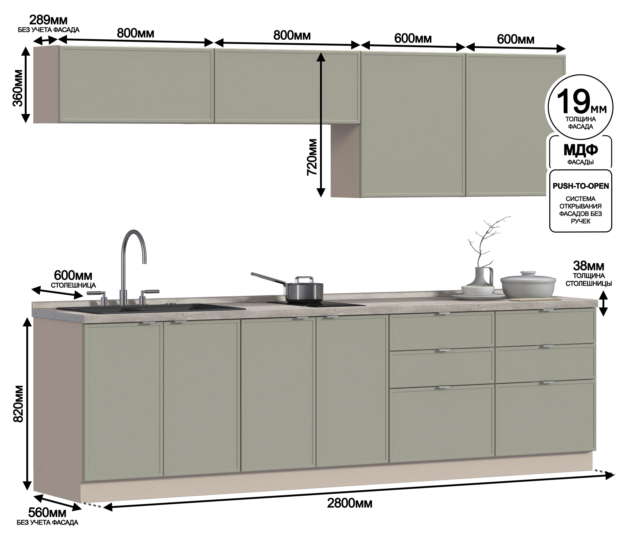 Кухонный гарнитур Регина Квадро Песочный / Латте 2,8 м Код 00000286979