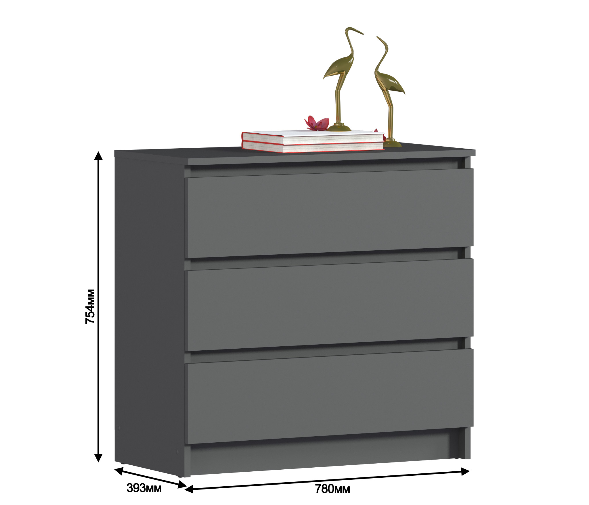 Комод для вещей Леон СБ-3287 лаконично разместится в любом интерьере. Удобный дизайн небольшого размера, 75х78х45 см, не займет много места в комнате. Комод представлен в современных и органичных цветах. Поставьте комод в детскую комнату, используйте для игрушек, в спальню или в гостиную - для одежды, модель подойдет даже для ванной комнаты, чтобы уютно расположить и оставить буквально под рукой все банные принадлежности: полотенца, технику, косметику и бытовую химию. Комод с ящиками выполнен из ЛДСП: прочного и долговечного материала, который устойчив к механическим повреждениям. Мебель дополнена тремя вместительными ящиками, надежными механизмами открывания, а отсутствующие ручки делают модель более органичной и лаконичной.