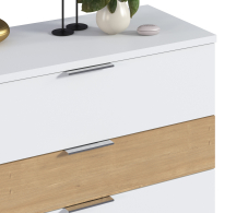 Хороший комод в спальню, очень функциональный! Смотрится отлично цвет скомпанован белый ящик и ящик дуб. Заказали в интернет магазине, искали по цене, здесь дешевле сразу перезвонили , доставка без опозданий, собрали качественно.