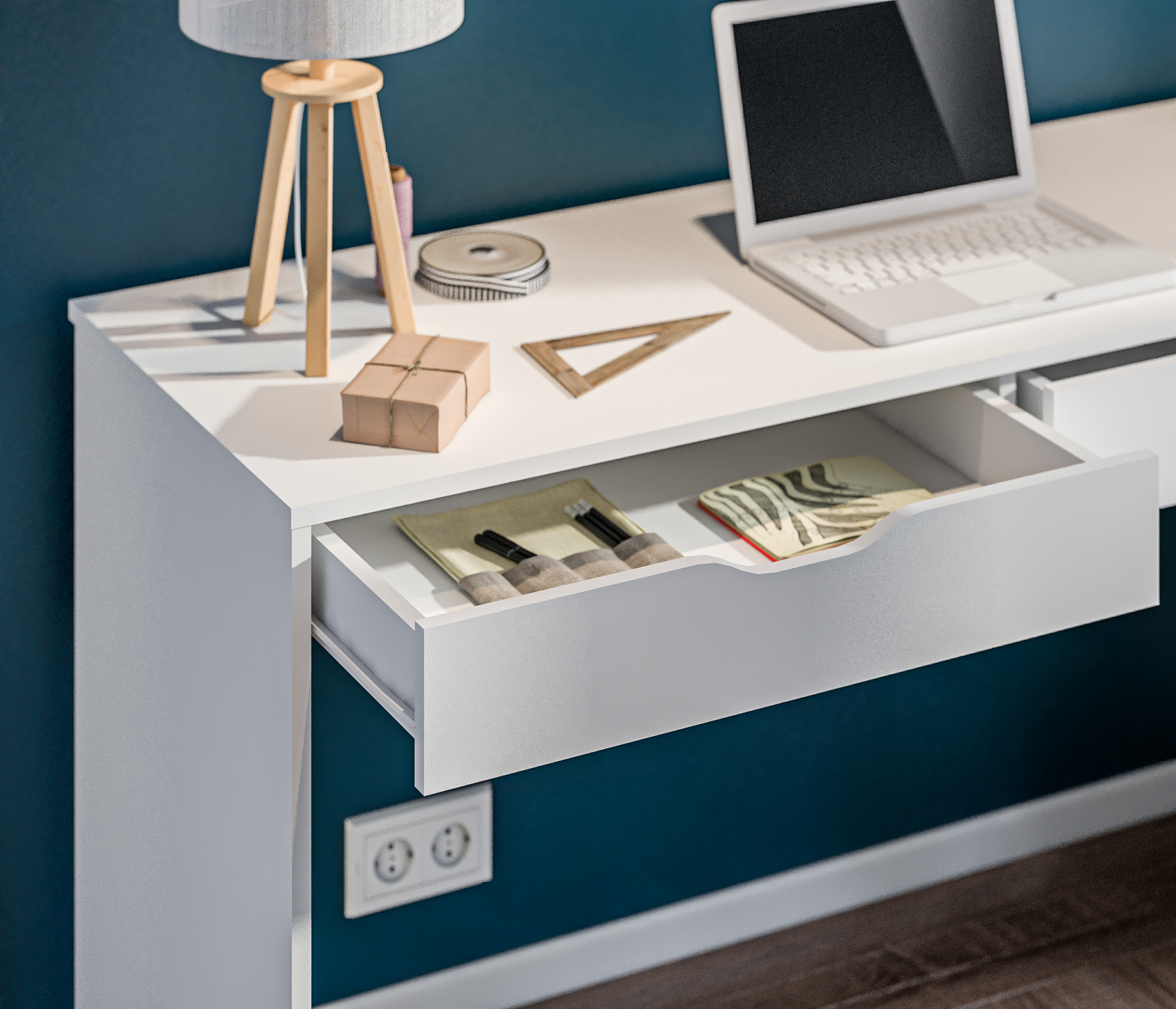 Минималистичный декор, отсутствие ручек и нейтральный цвет стола позволят разместить его в любой интерьер. Также вы можете дополнить письменный стол Бруклин комодами одноименной коллекции.