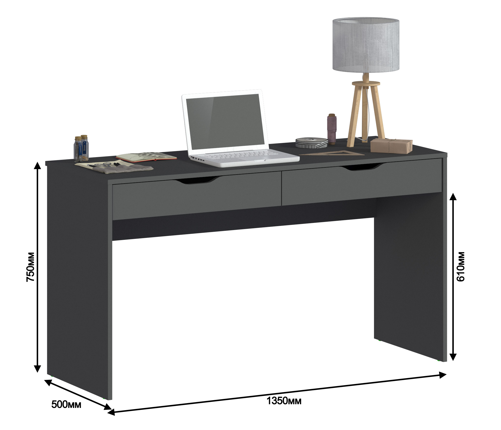 Стол Бруклин СБ-3335 – продуманное и комфортное рабочее место. Он может занять достойное место в кабинете, комнате школьника или студента, а также в офисе. Габариты стола Бруклин – ширина 135, высота 75 и глубина 50 см. Под рабочей поверхностью расположены два вместительных выдвижных ящика для хранения разных вещей.