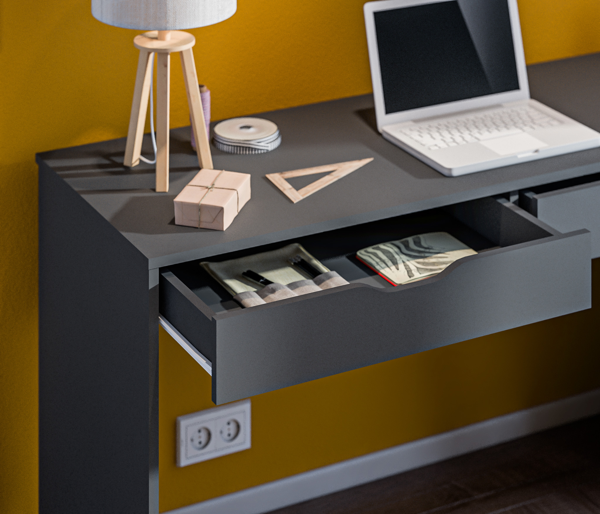 Минималистичный декор, отсутствие ручек и нейтральный цвет стола позволят разместить его в любой интерьер. Также вы можете дополнить письменный стол Бруклин комодами одноименной коллекции.