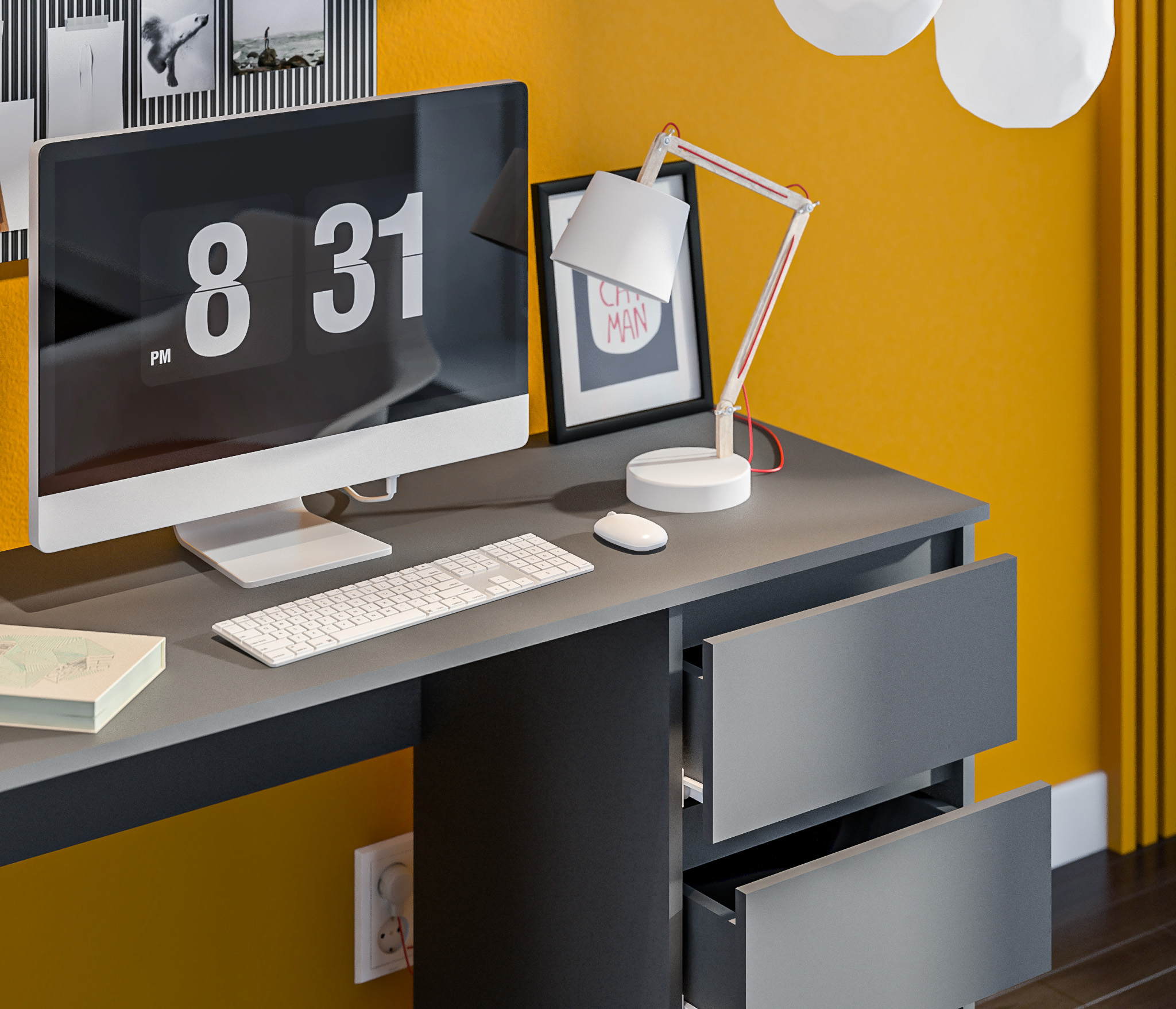 Стол Леон СБ-3336 – продуманное и комфортное рабочее место. Он может занять достойное место в кабинете, комнате школьника или студента, а также в офисе. Габариты стола Леон – ширина 119, высота 75 и глубина 50 см. Под рабочей поверхностью расположена тумба с ящиками для хранения разных мелочей.БикЮМинималистичный декор, отсутствие ручек и нейтральный цвет стола позволят разместить его в любой интерьер. Также вы можете дополнить письменный стол Леон комодами одноименной коллекции. Выполнен комод из высококачественного КДСП.
