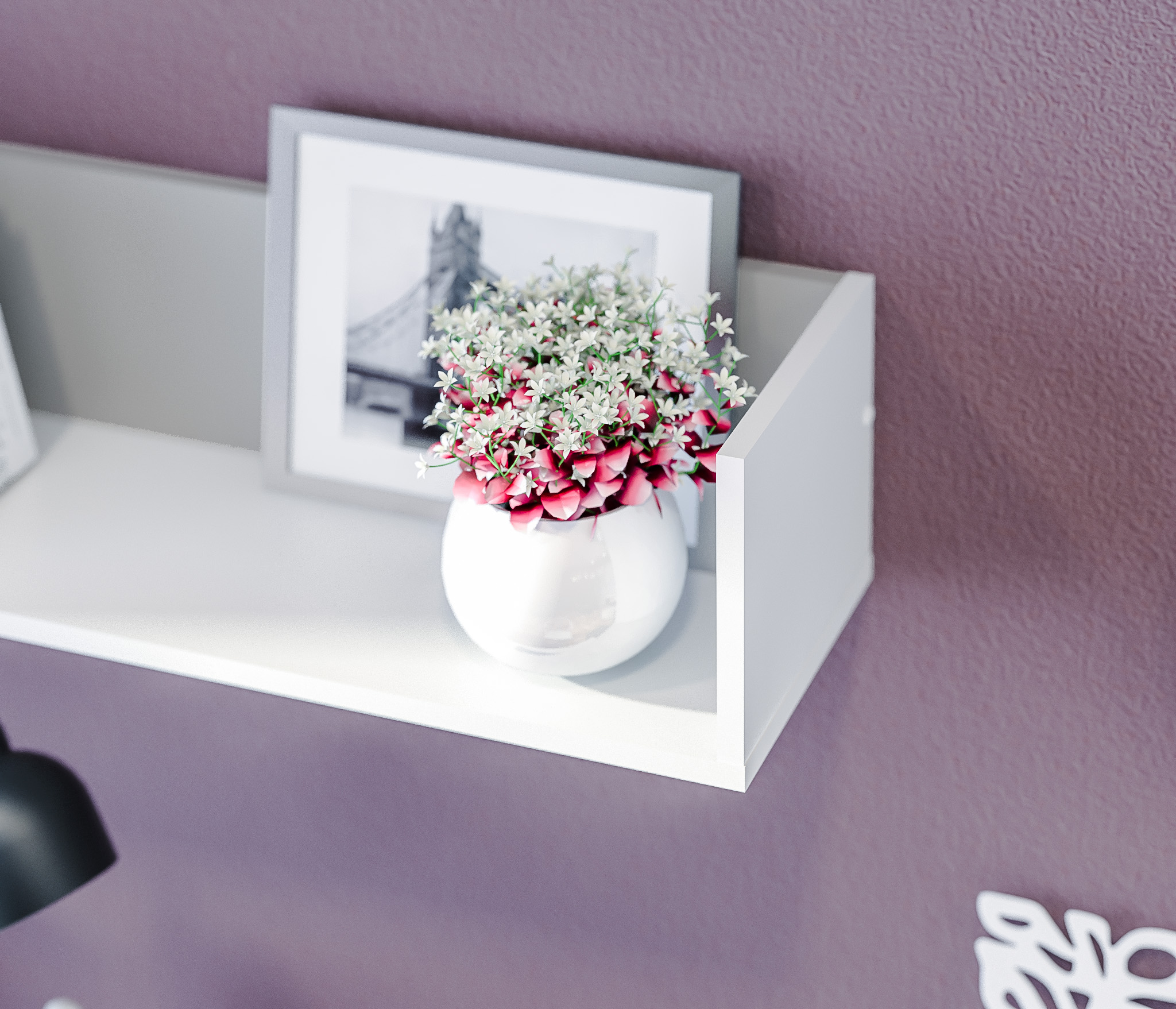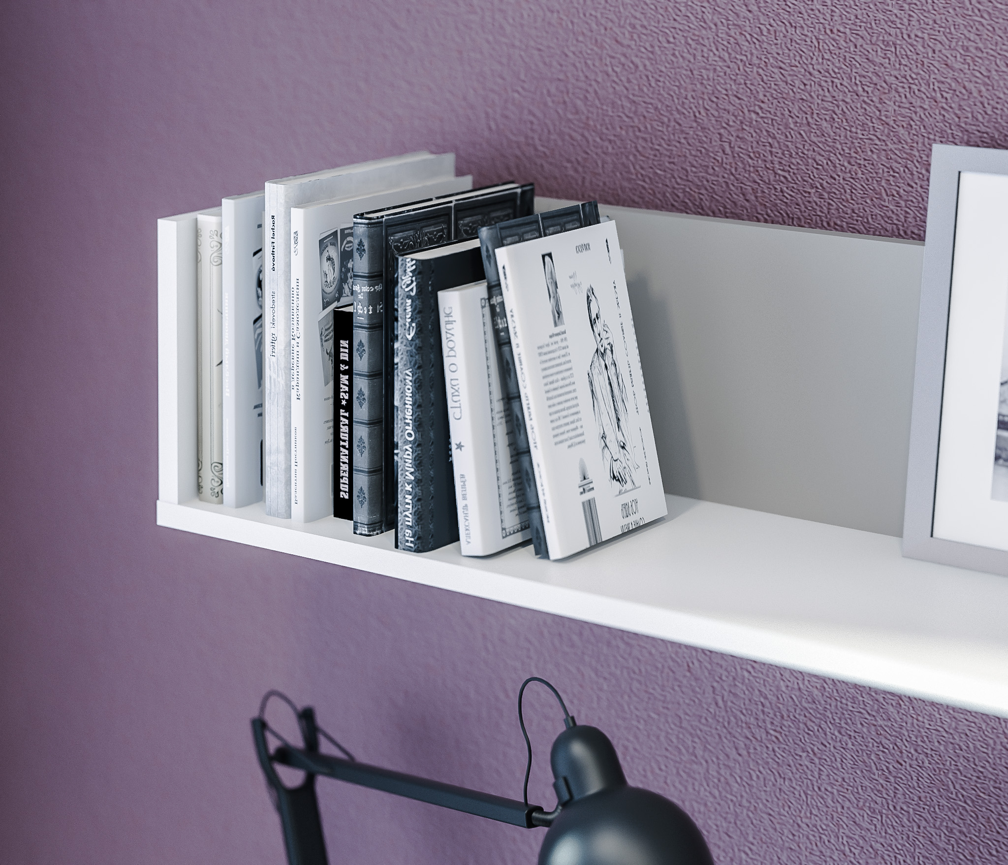 Полка Mika / Мика СБ-3285 выполнена в современном минималистичном стиле и является составной частью модульного гарнитура Мика. Полка будет органично смотреться над письменным столом из коллекции Мика. Габаритные размеры – ширина 85 см, высота 20 см, глубина 24 см. Это удобный элемент хранения, где можно разместить книги, журналы, документы или небольшую оргтехнику. Материал корпуса – ЛДСП с отделкой в цвете «Белый Альпийский». Полка крепится к стене при помощи дюбелей, которые входят в комплект.