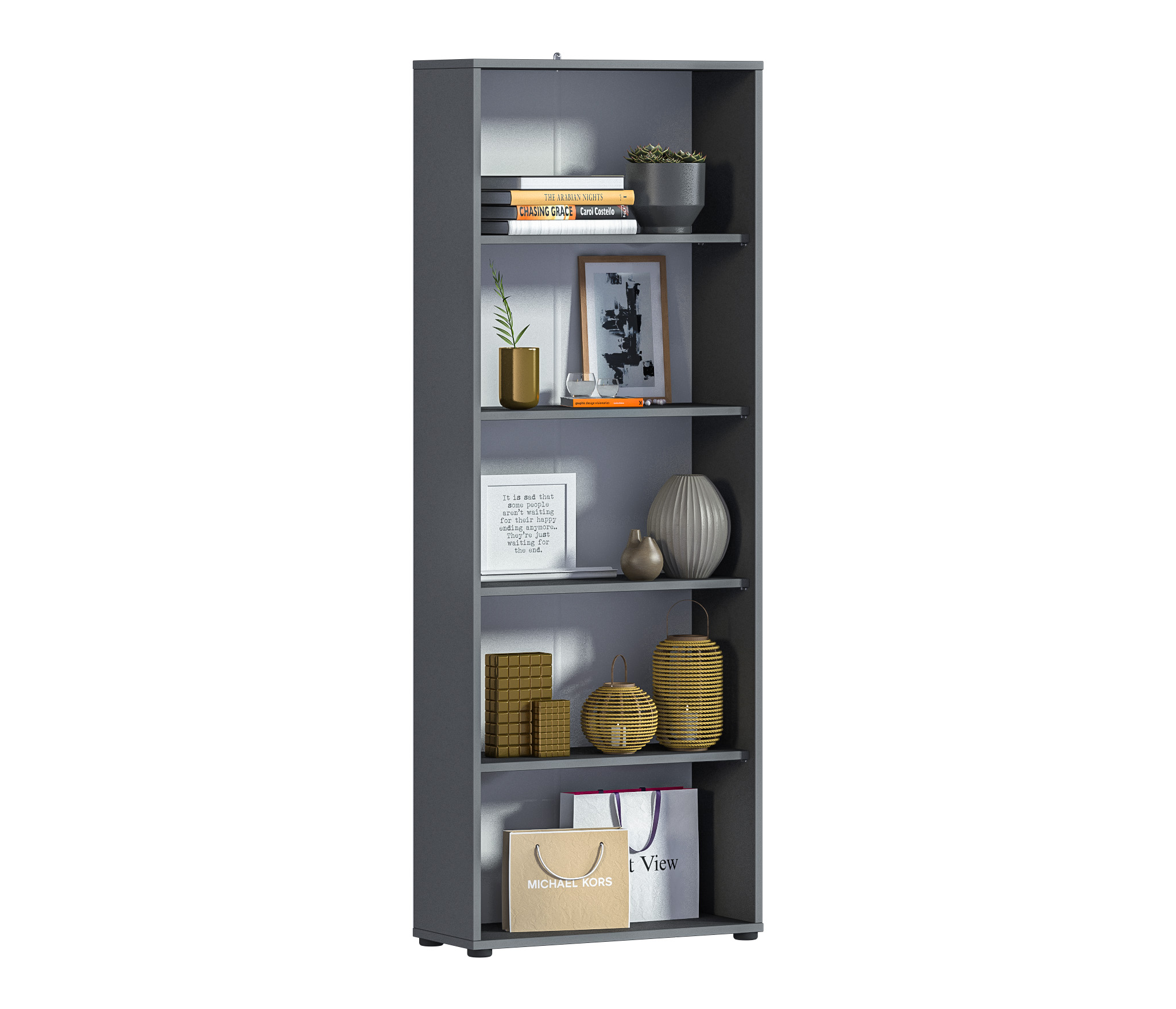 Габаритные размеры – ширина 60 см, высота 161,1 см и глубина 24,3 см. На шести открытых просторных полках можно без труда разместить книги, журналы, сувениры и множество памятных предметов.