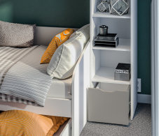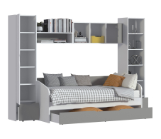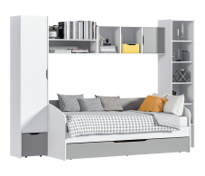 Mika / Мика детская Белый/Серый (пенал, стеллаж, полки, кровать с основанием и ящиком) Код 00000298345