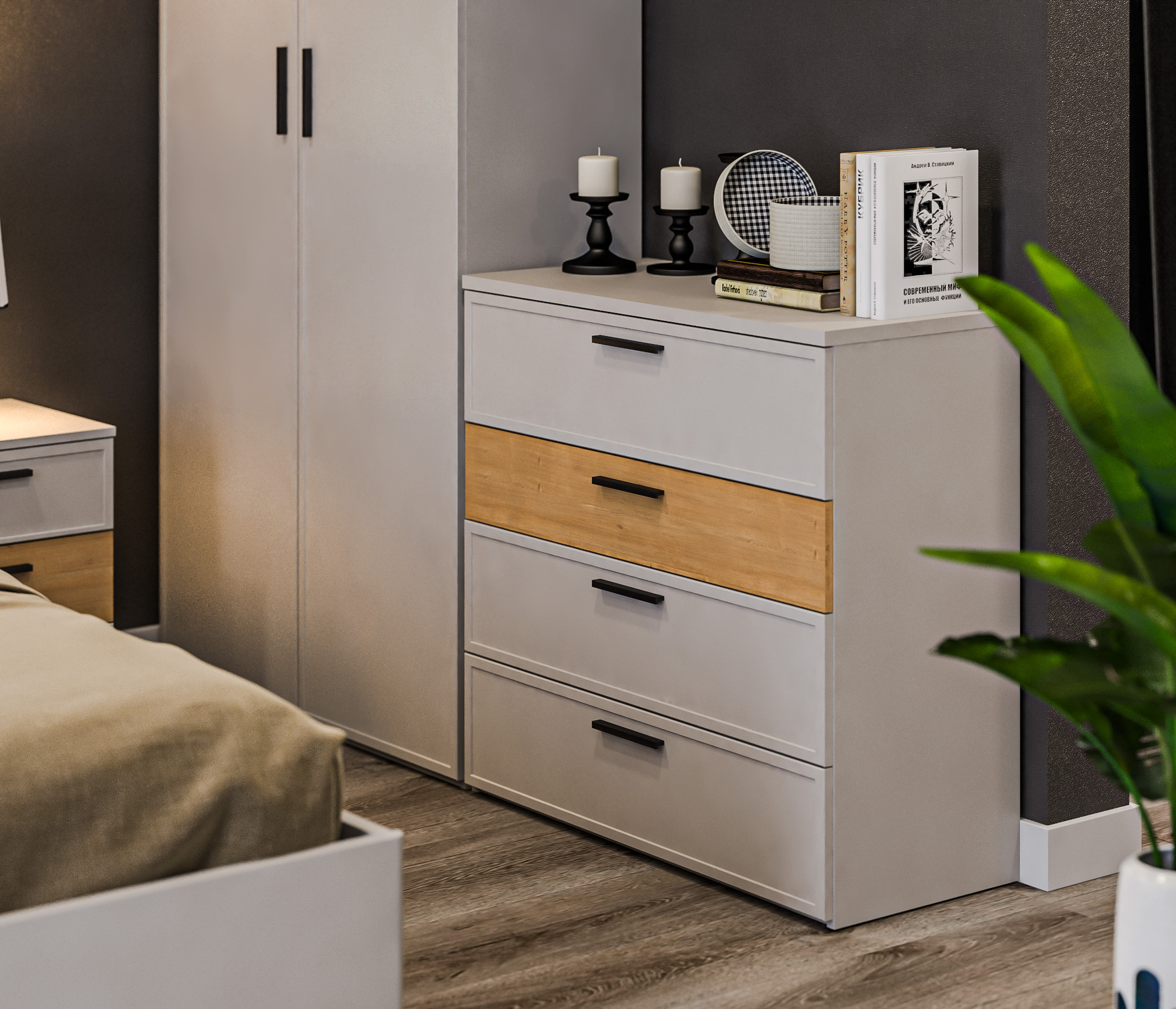 Милан СБ-3296 Комод Серый/Дуб Гамильтон,МДФ Светло серый