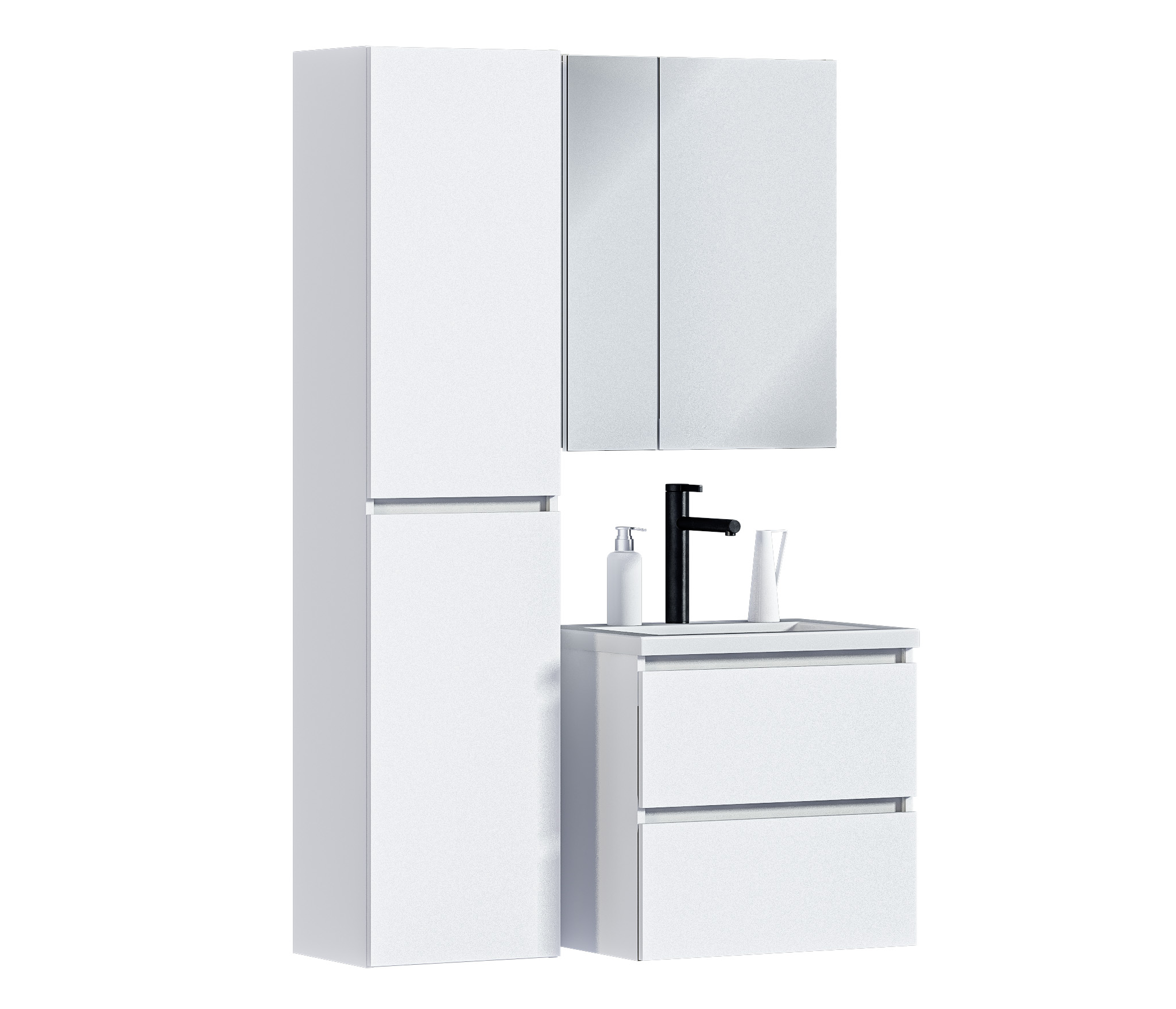 Искала мебель белого цвета, подходящую под отделку стен ванной комнаты, этот набор сразу понравился, современный, стильный и подходящий по размерам, заказала без долгих раздумий, цена подходящая, мебель здесь из хороших, безопасных материалов и качественная, я не первый раз тут заказываю и всегда довольна выбором. Этот набор интересного дизайна, без ручек, красиво и оригинально смотрится.