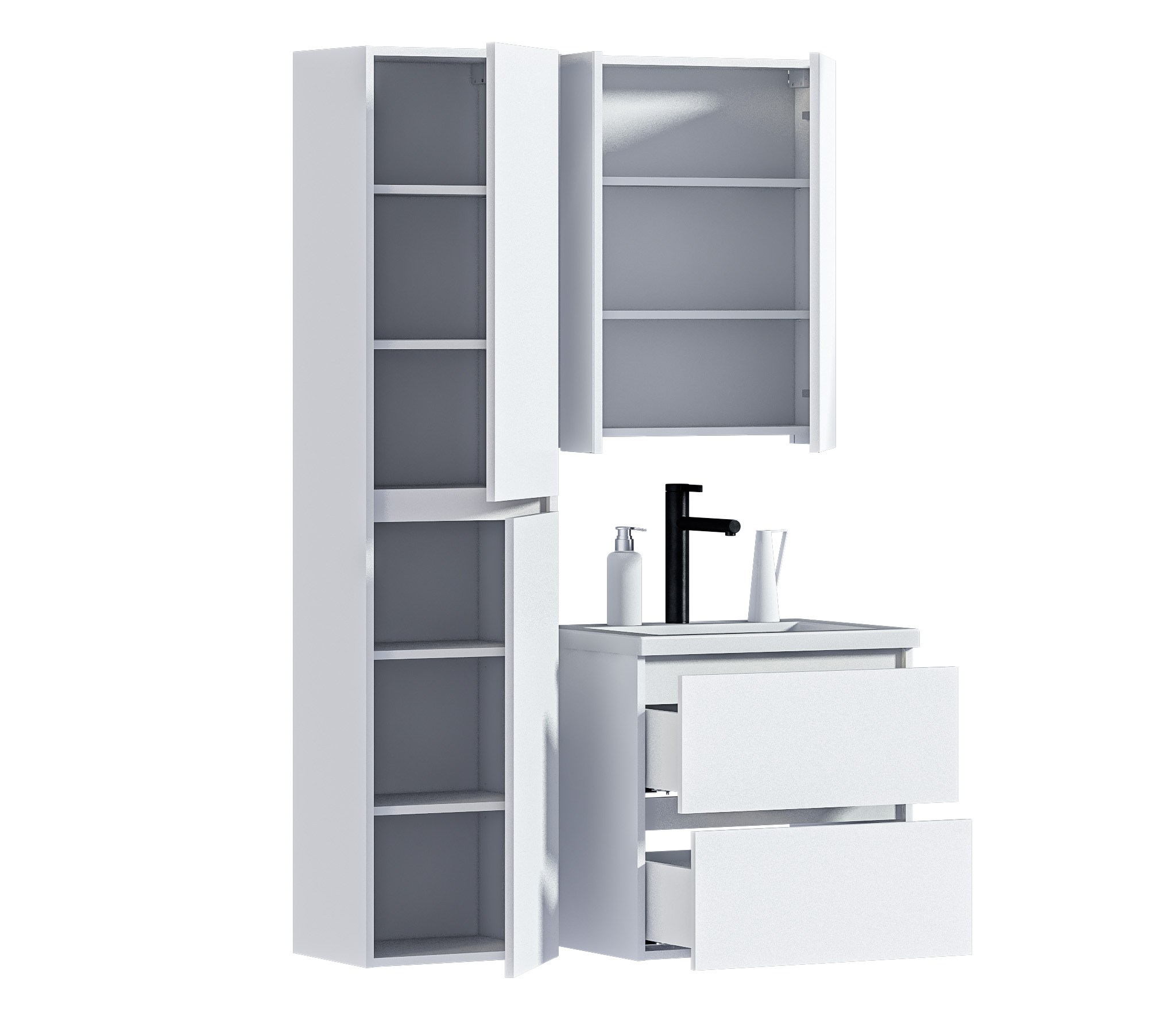 После ремонта обновляли мебель в ванной и остановили выбор на данном наборе. У производителя широкий ассортимент, и приятные цены на мебель. Качество мебели отличное, в живую смотрится великолепно. Достаточно вместительные и удобные ящики, понравилось отсутствие ручек, стиль и современно. Доставили в оговорённый срок без задержек, собрали быстро и аккуратно.