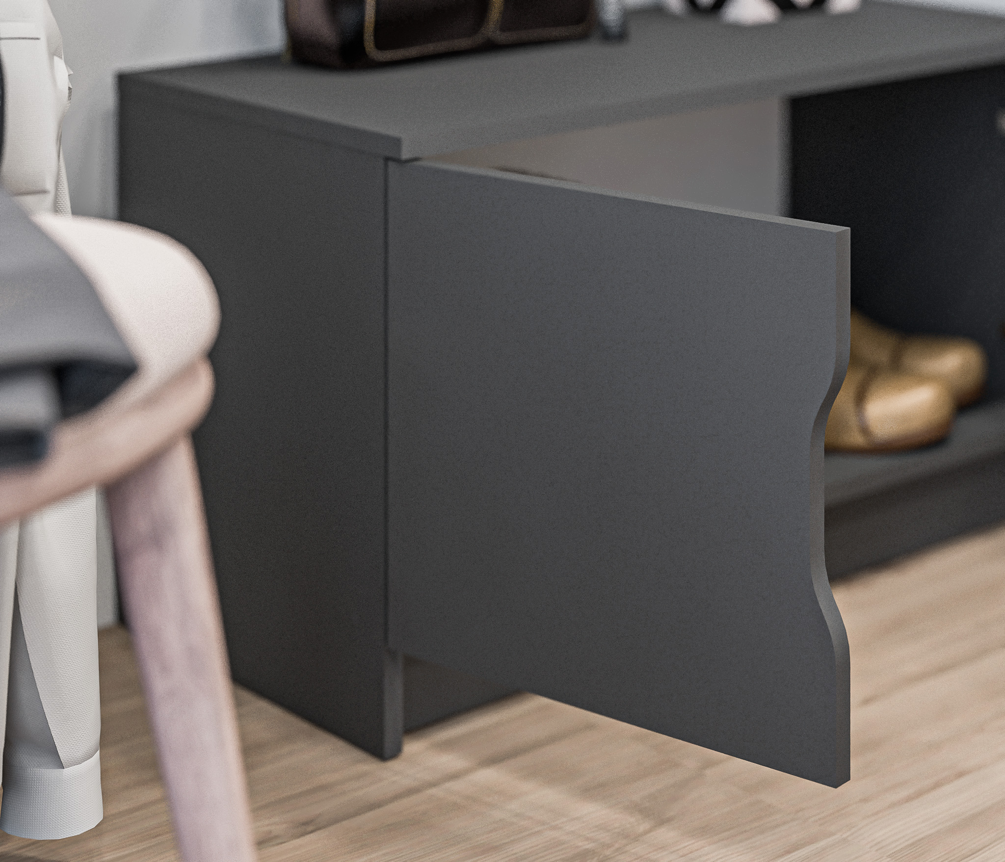 Тумба предлагает удобное хранение и функциональность. Она оснащена двумя дверцами, вы можете хранить обувь, аксессуары и другие предметы, необходимые в прихожей.